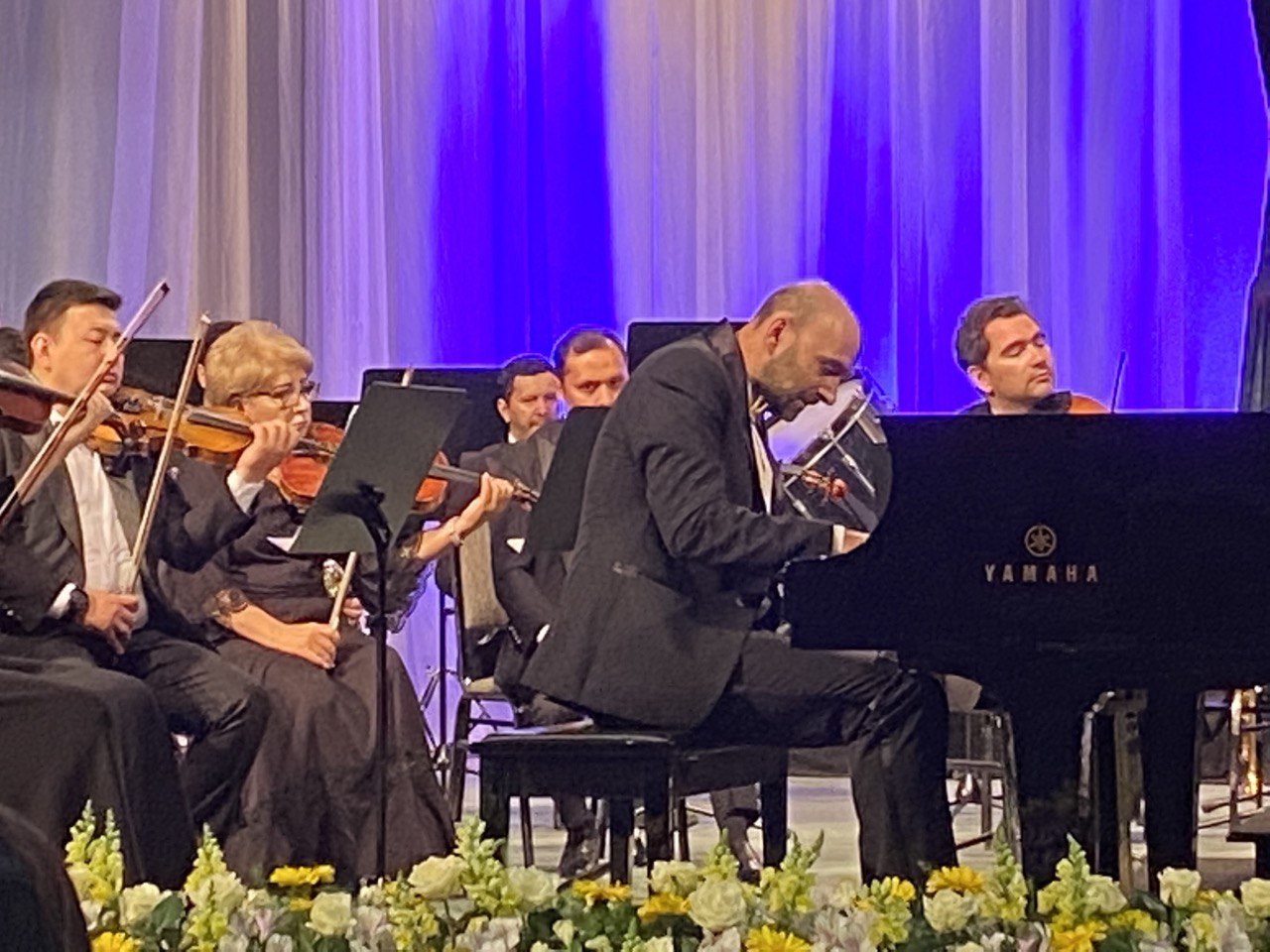 Польский пианист виртуозно исполнял произведения европейских композиторов,а на сцене артисту аккомпанировали артисты Национального симфонического оркестра Узбекистана.