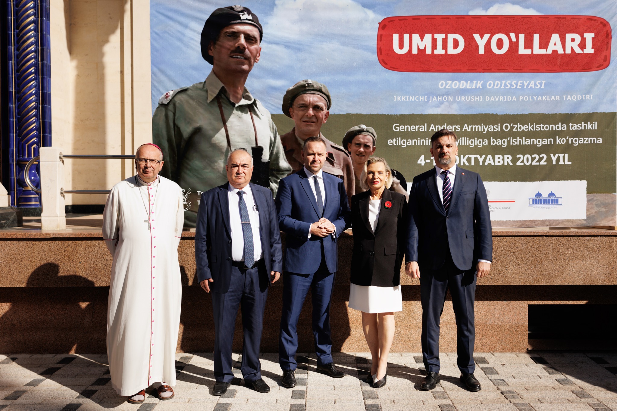Затем собравшиеся гости прошли к зданию Государственного Музея Памяти Жертв Репрессий в Ташкенте, где после исполнения узбекским военным оркестром государственных гимнов Польши и Узбекистана состоялась официальная церемония открытия выставки «Пути Надежды – Одиссея свободы», подготовленная Институтом Национальной Памяти. Президент правления Института Национальной памяти Кароль Навроцкий, посол Радослав Грук и директор музей Бахтиёр Хасанов напомнили о пути, который привел польских солдат в Узбекистан, о пути, который прошли соотечественники от советского нападения на Польшу 17 сентября 1939 года, через массовые депортации в Сибирь и советские трудовые лагеря, чтобы наконец покинуть Советский Союз под командованием генерала Владислава Андерса следовать на Родину, чтобы проявить героизм в борьбе с фашизмом на многих фронтах Второй Мировой Войны. С речью выступила также дочь генерала Анна Мария Андерс, которая в эмоциональном обращении поблагодарила Узбеков за помощь польским солдатам и польскому мирному населению, находившемуся в 1942 году под командованием ее Отца в Узбекистане.