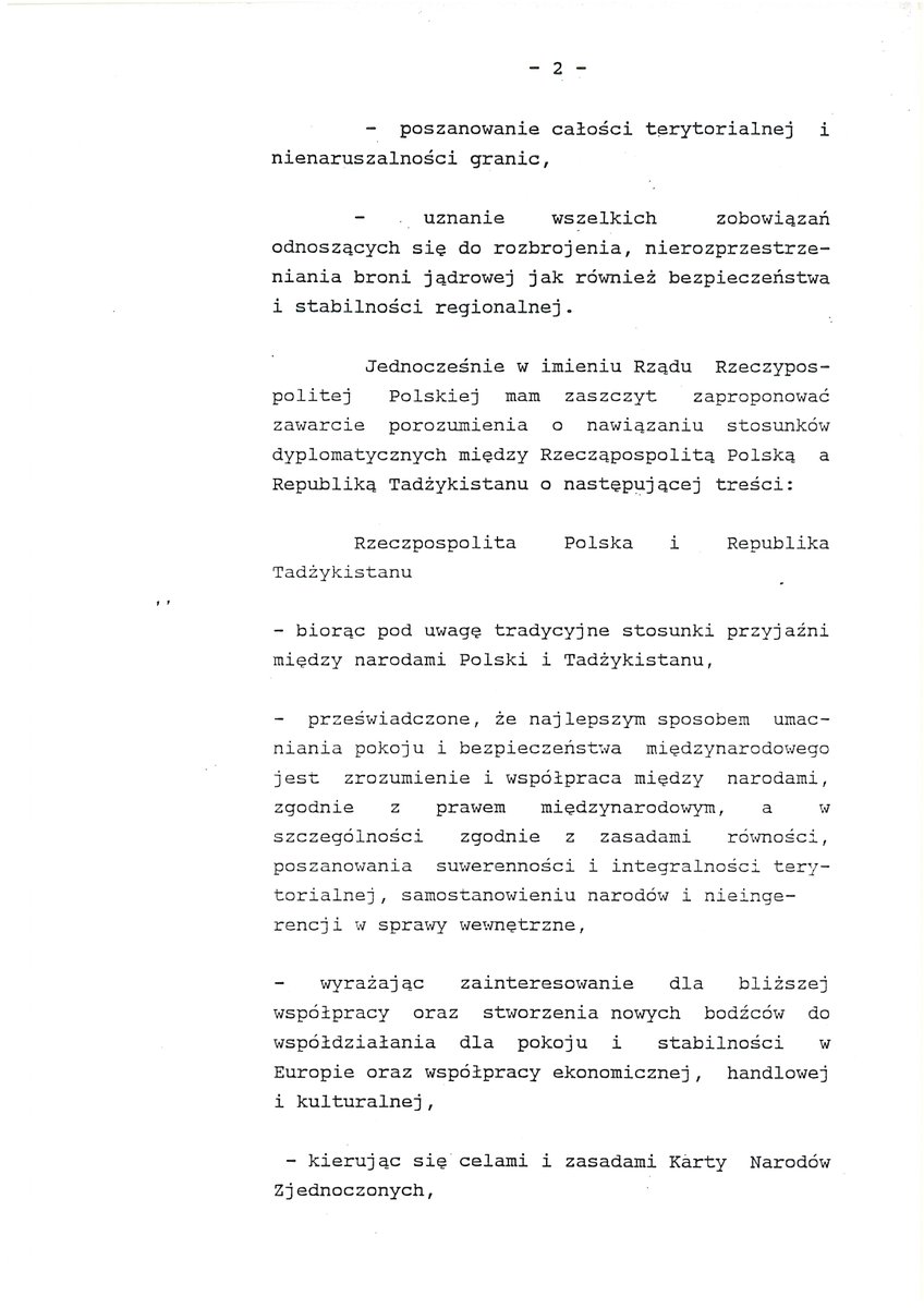 11 II 1992 - 30-я годовщина установления дипломатических отношений между Республикой Польша и Республикой Таджикистан.