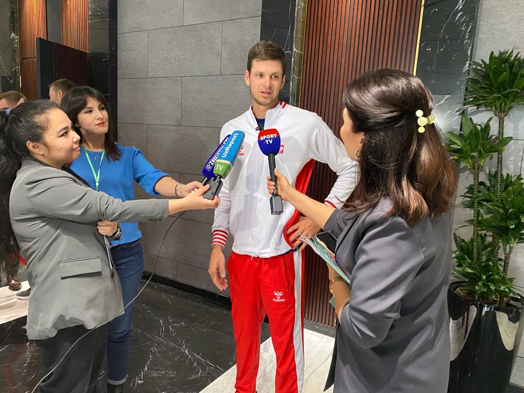 Польские теннисисты вместе с Хубертом Хуркачем (8-е место в рейтинге ATP) прилетели в Ташкент для проведения матча со сборной Узбекистана. Спортсмены обеих команд встретятся на корте уже завтра и в субботу, 3 февраля. Ставкой в этих спортивных поединках будет выход в Мировую Группу Кубка Дэвиса. В ходе сегодняшнего открытия раунда плей-офф польских спортсменов встретил Марчин Вакар, заместитель Посла Республики Польша в Узбекистане. Во время встречи провели жеребьевку, которая определила, с кем сойдутся игроки.