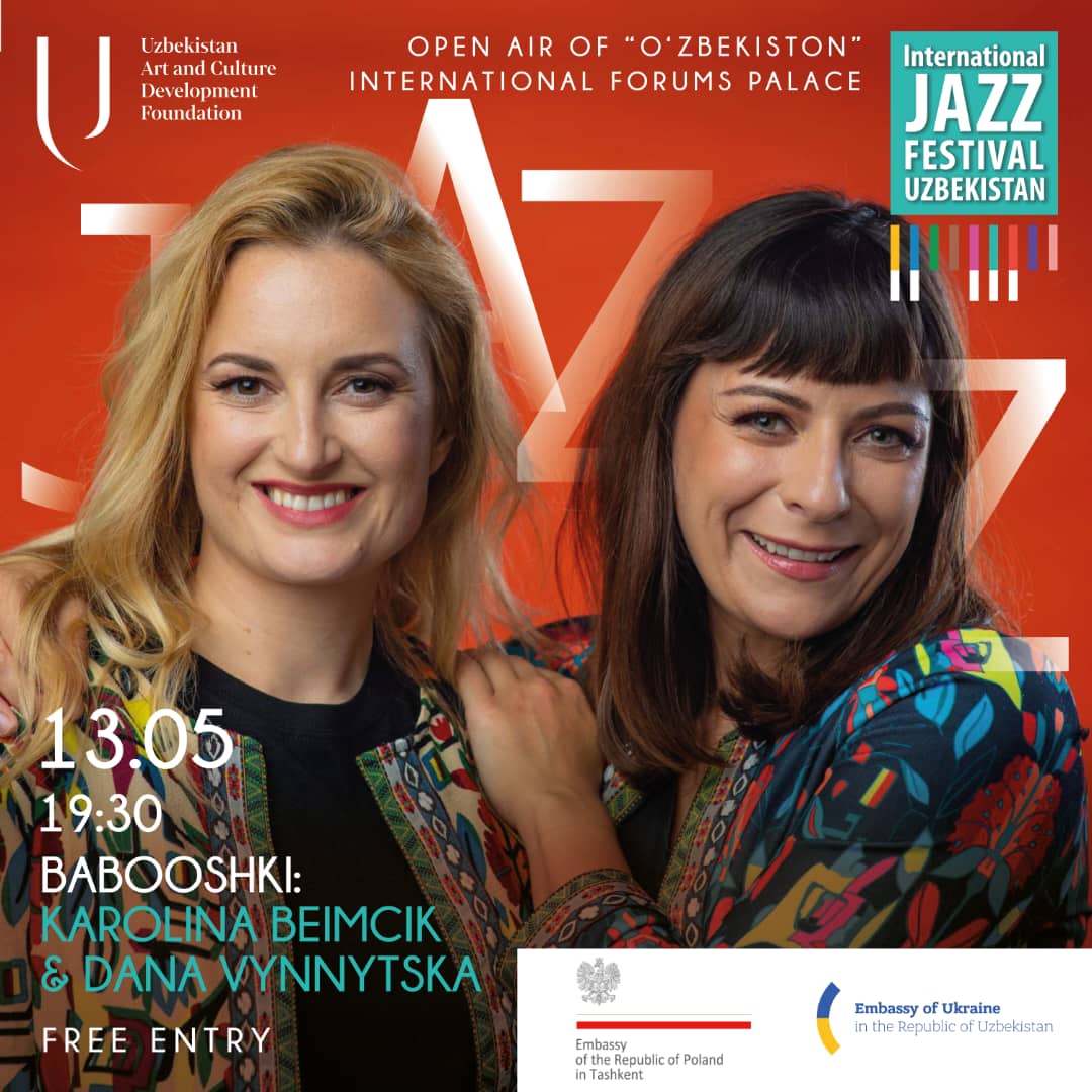 Polsha Respublikasining O’zbekistondagi elchixonasi Sizni 7 Xalqaro Jazz Festivali doirasida bo'lib o'tadigan Polsha-Ukraina Babooshki nomli guruhining O’zbekistondagi Ukraina elchixonasi bilan hamkorligida tashkillashtirilgan konsertiga taklif qilish sharafiga ega 2023-yil 13-may, shanba kuni, soat 19.30 Xalqaro Forumlar Saroyida (ochiq maydon) Toshkent, Istiqbol ko'chasi, 1.