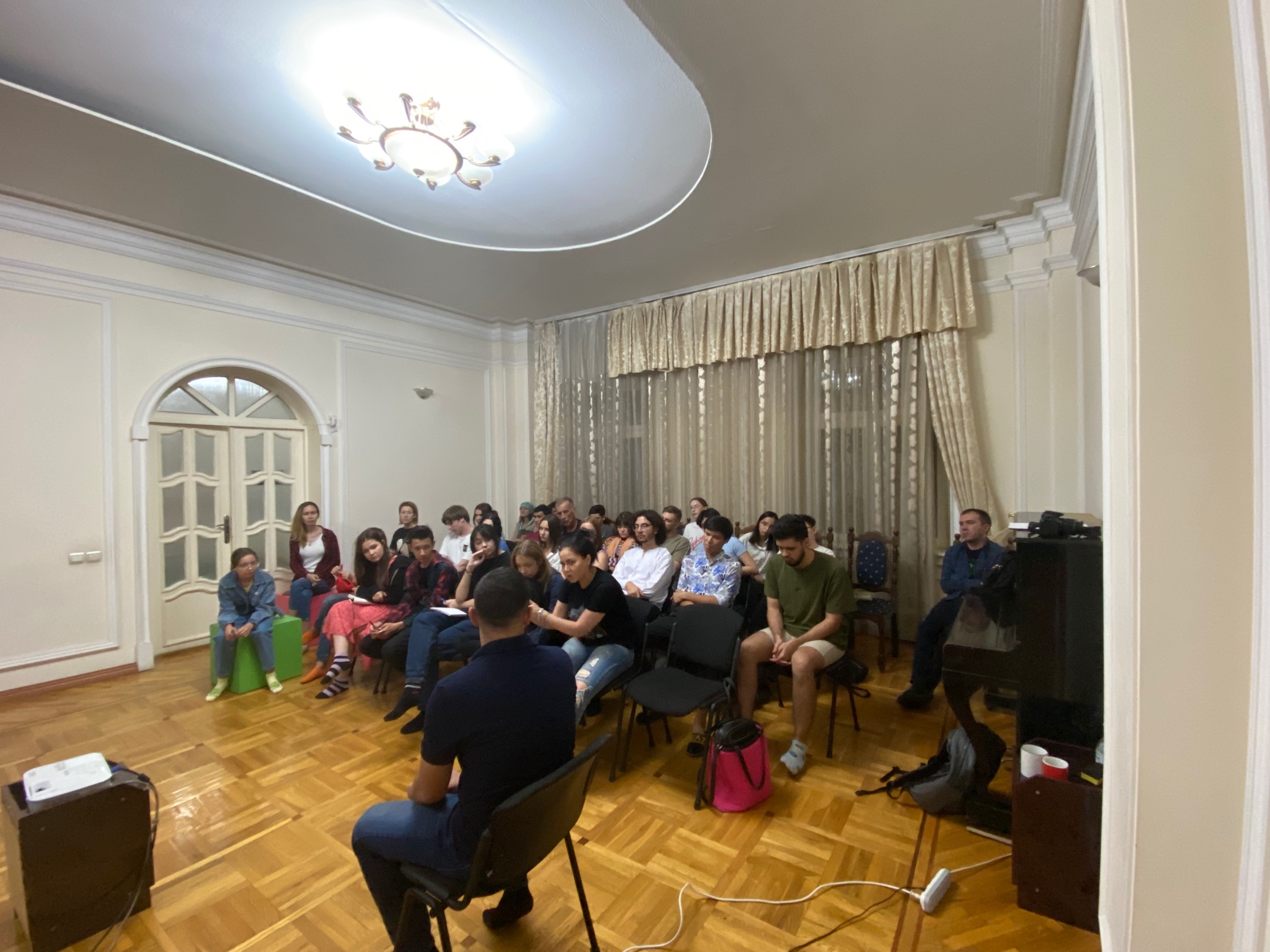 Беседа с гостями из Польши (перевод Али Мусабеков) была очень вдохновляющей и познавательной. Г-н Ежи Зельник, как опытный педагог и театральный режиссер, поделился своими мыслями и советами по подробным темам, связанным с созданием роли.