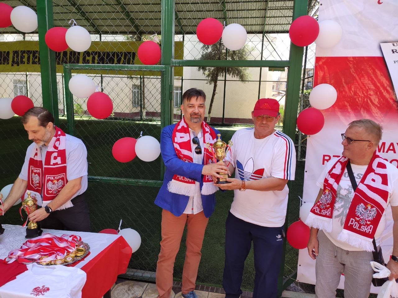 Zebrani wspólnie odśpiewali Mazurka Dąbrowskiego. Z rąk Radosława Gruka Ambasadora🇵🇱 w Uzbekistanie i Piotra Matusiaka konsula🇵🇱 uczestnicy meczów otrzymali medale, a najlepsi piłkarze turnieju puchary.