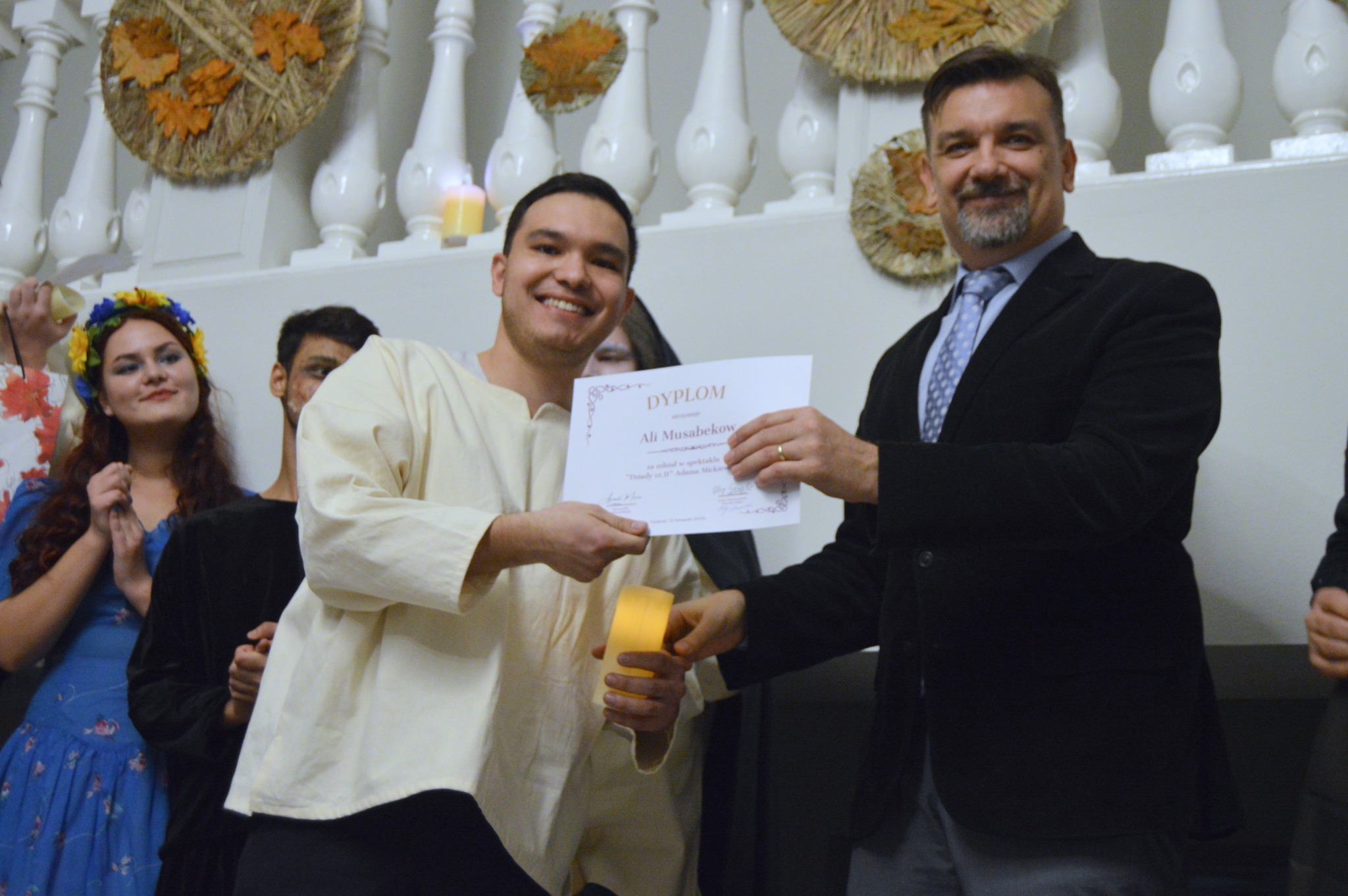 W listopadowy wieczór, w roku poświęconym polskiemu romantyzmowi, swoje podwoje dla uczących się języka polskiego przy Stowarzyszeniu Świetlica Polska otworzyła Ambasada RP w Taszkencie. Pretekstem do spotkania była inscenizacja jednej z najstarszych słowiańskich tradycji, jaką były dziady. Słowa dramatu Mickiewicza wybrzmiały w magicznym blasku świec, ceremonii ognia i przy dźwiękach tajemniczej muzyki. Kunszt aktorski młodzieży polonijnej został nagrodzony przez Ambasadora RP Radosław Gruka okolicznościowymi dyplomami i przygotowanymi na tę okazję podarunkami.