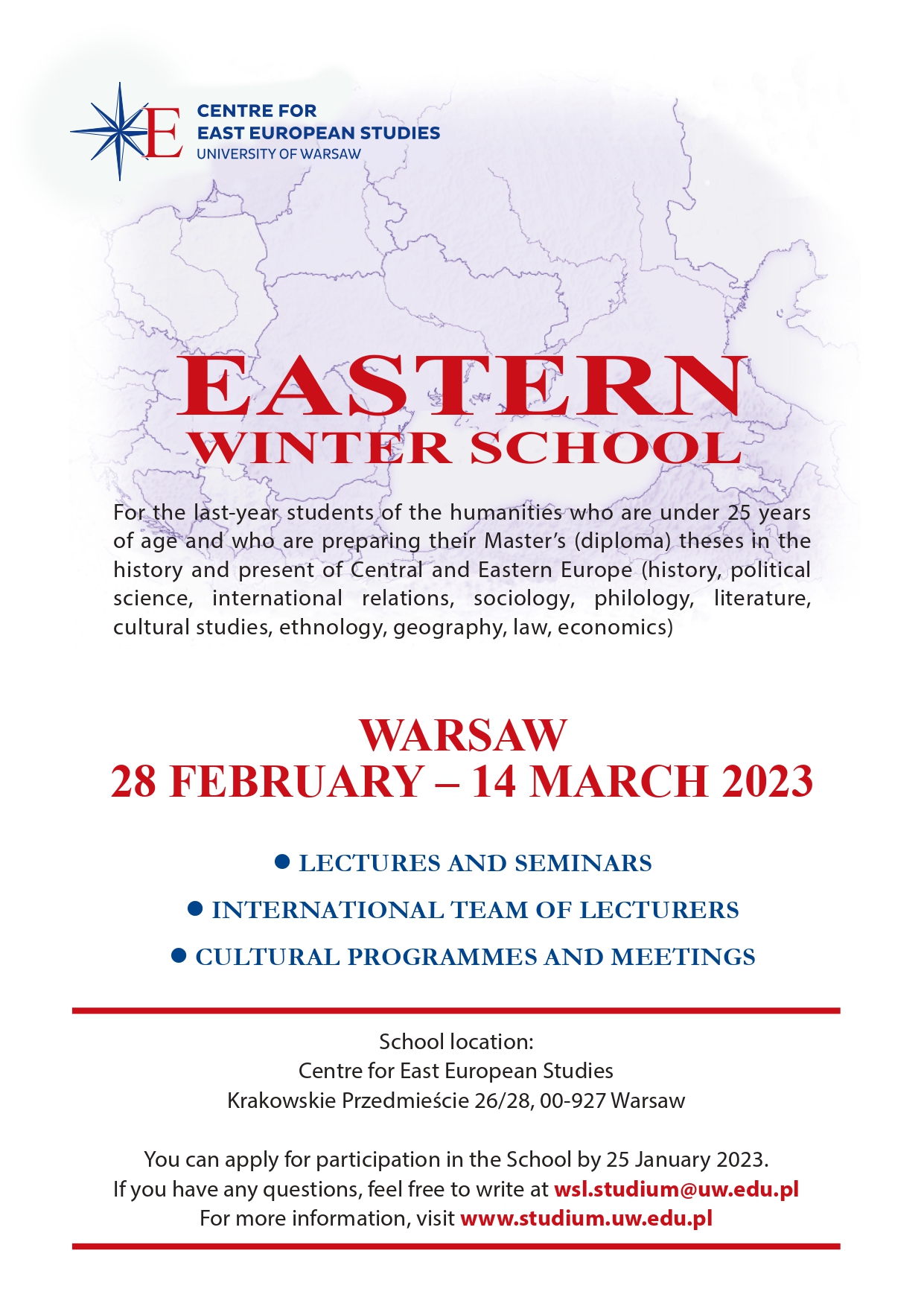 DZIEWIĘTNASTA WSCHODNIA SZKOŁA ZIMOWA 28 LUTEG0 – 14 MARCA 2023