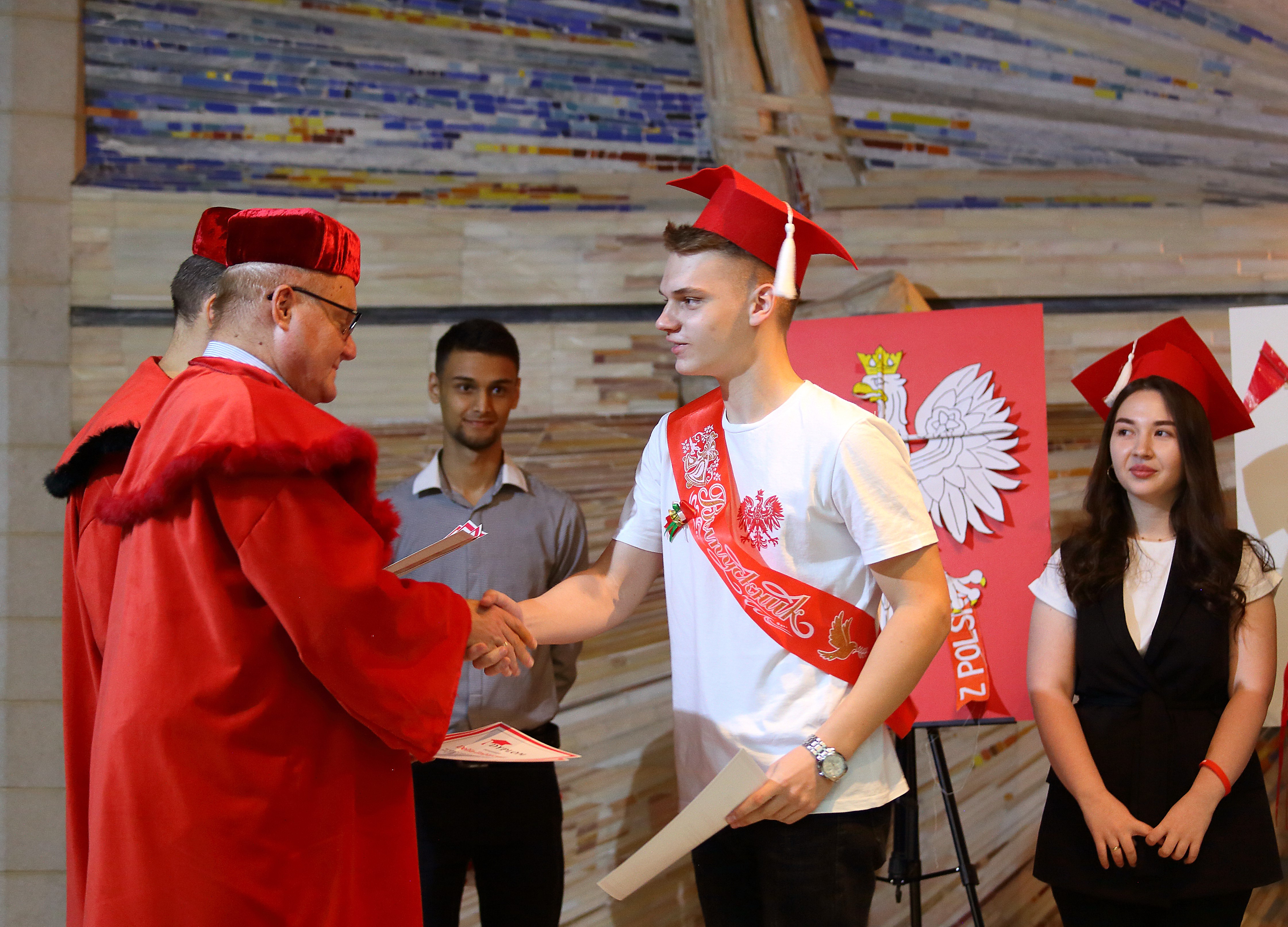 W uroczystości udział wzięli konsulowie Piotr Matusiak i Mariusz Szydłowski, którzy w strojach w stylu rektorskim wręczali dyplomy oraz nagrody dla wyróżniających się uczniów.