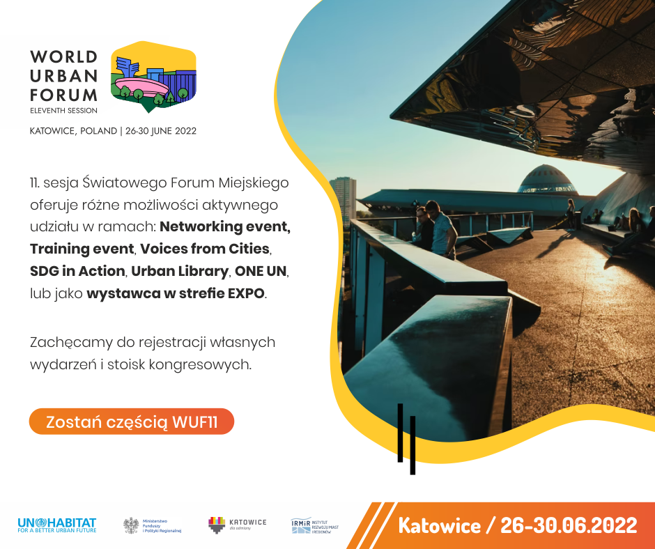Przez pięć dni od 26 do 30 czerwca Katowice staną się stolicą wszystkich miast na świecie. Hasło polskiej edycji WUF brzmi: „Zmieniamy nasze miasta dla lepszej przyszłości”. To niepowtarzalna okazja by stać się częścią międzynarodowego wydarzanie i decydować o przyszłości miast. Bezpłatna rejestracja trwa do 22 czerwca na stronie www.wuf.habitat.org.