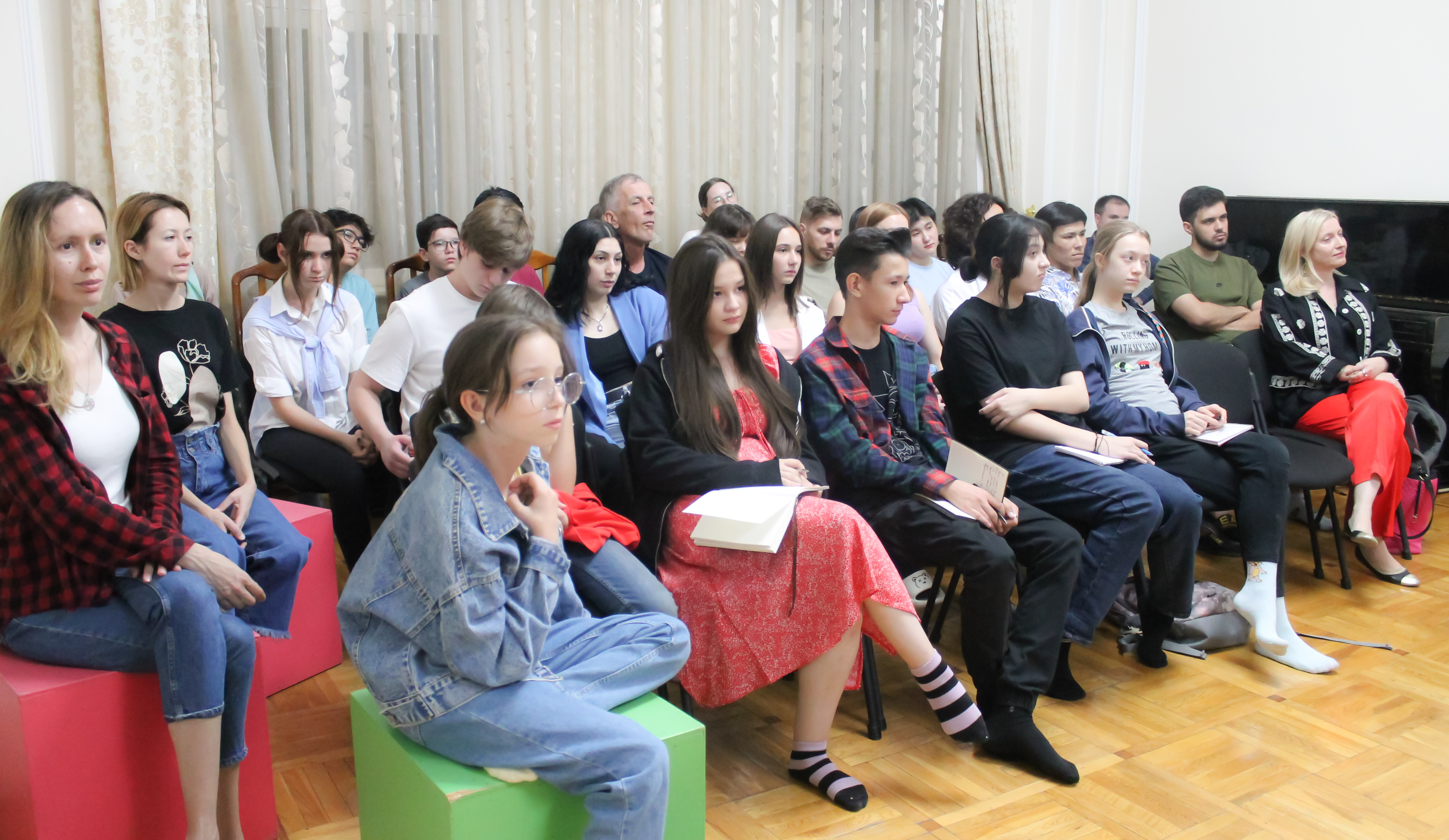 Rozmowa z gośćmi z Polski była wielce inspirująca i poznawcza. Pan Jerzy Zelnik jako doświadczony pedagog i reżyser teatralny udzielał swoich spostrzeżeń i rad na szczegółowe tematy związane z tworzeniem roli.
