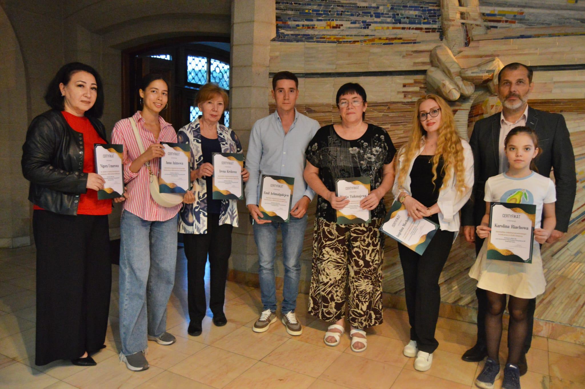 Symboliczny ostatni dzwonek wybrzmiał dla osób uczęszczających na zajęcia języka polskiego prowadzone przez Agnieszkę Mikulec, nauczycielkę skierowaną przez ORPEG do Uzbekistanu. Zakończenie semestru było okazją do podsumowania i nagrodzenia osiągnięć uczniów w licznych projektach zrealizowanych w bieżącym roku przez polonistkę i jej podopiecznych. Wszystkie powstały dzięki pasji i zaangażowaniu realizujących je osób oraz dzięki wsparciu Ambasady RP w Taszkencie. Uczniom języka polskiego serdecznie gratulujemy i życzymy, by pełni energii rozpoczęli nowy semestr zajęć we wrześniu.