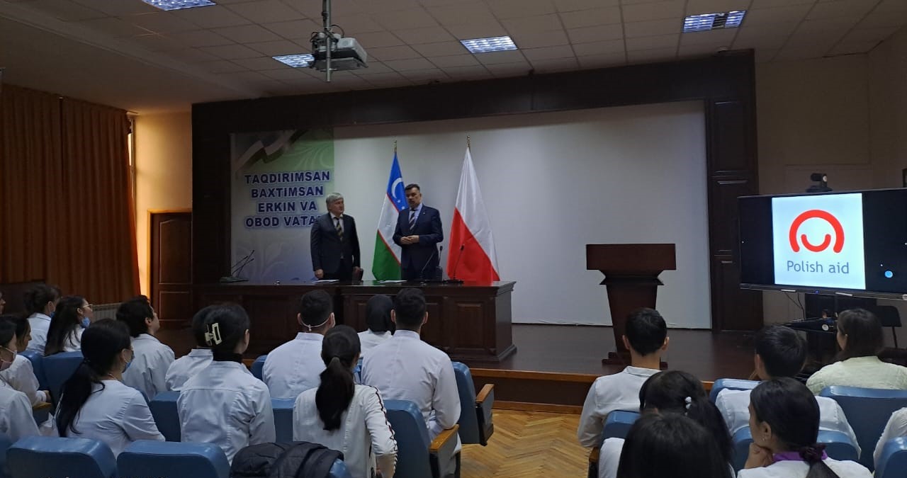 W dniu 1 grudnia odbyła się uroczystość na której Ambasador Radosław Gruk przekazał na ręce Feruza Turaeva Dyrektora Centrum Endokrynologii w Taszkencie sprzęt audiowizualny zakupiony przez Ambasadę RP w Taszkencie ze środków Departamentu Współpracy Rozwojowej MSZ dla Państwowego Specjalistycznego Naukowo-Praktycznego Centrum Medycznego Endokrynologii im. Y.Kh.Turakulova w Taszkencie. Przekazany przez Ambasadę RP sprzęt posłuży do kształcenia przyszłych lekarzy oraz usprawni diagnostykę online i zabiegi telemedyczne. Centrum jest jedynym ośrodkiem terapeutyczno-diagnostycznym, naukowo-badawczym i pedagogicznym w zakresie endokrynologii w Azji Centralnej, który świadczy usługi medyczne dla ok 60 tys. pacjentów rocznie oraz kształci w Centrum Dydaktycznym przyszłych lekarzy endokrynologów.
