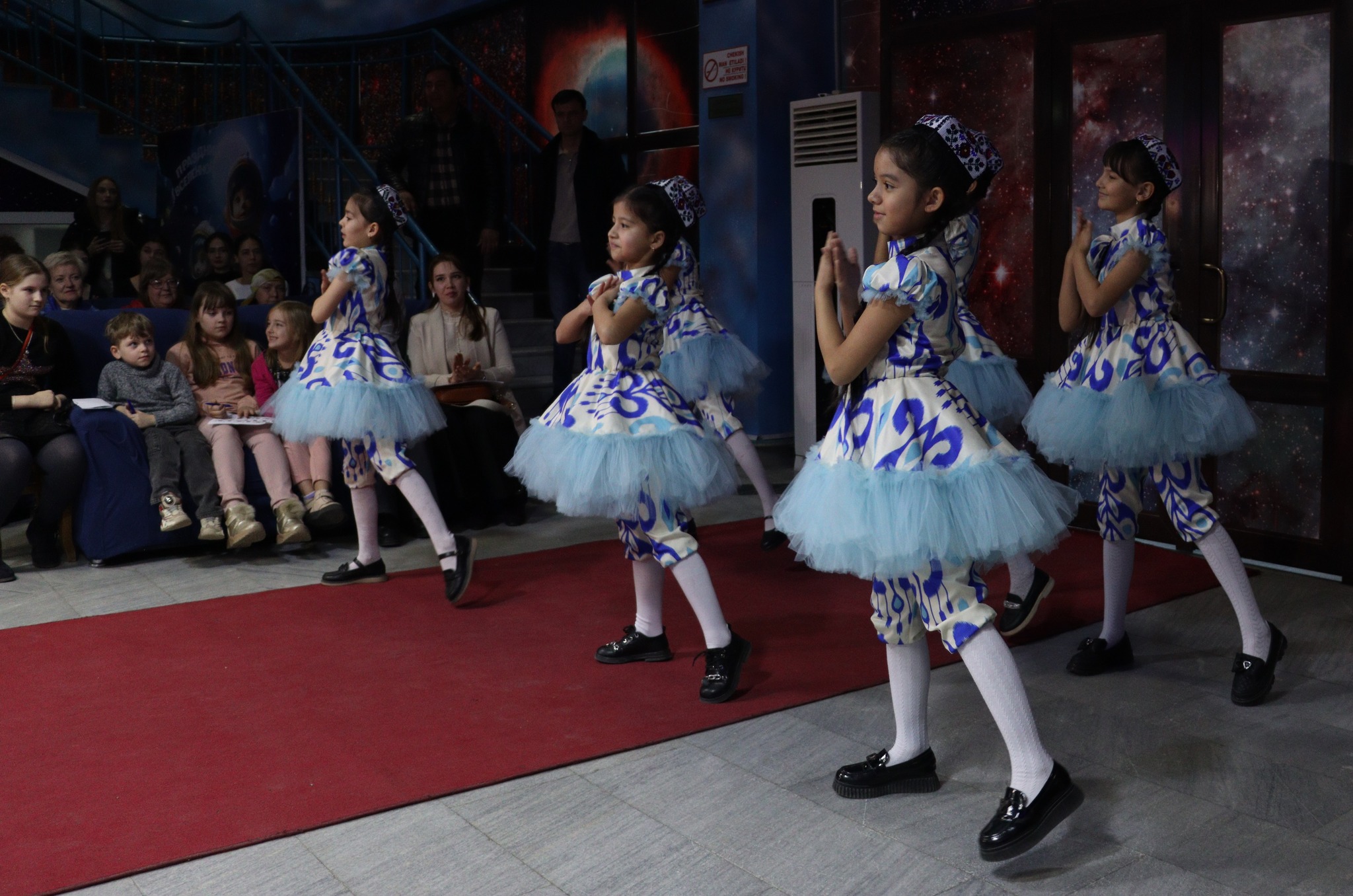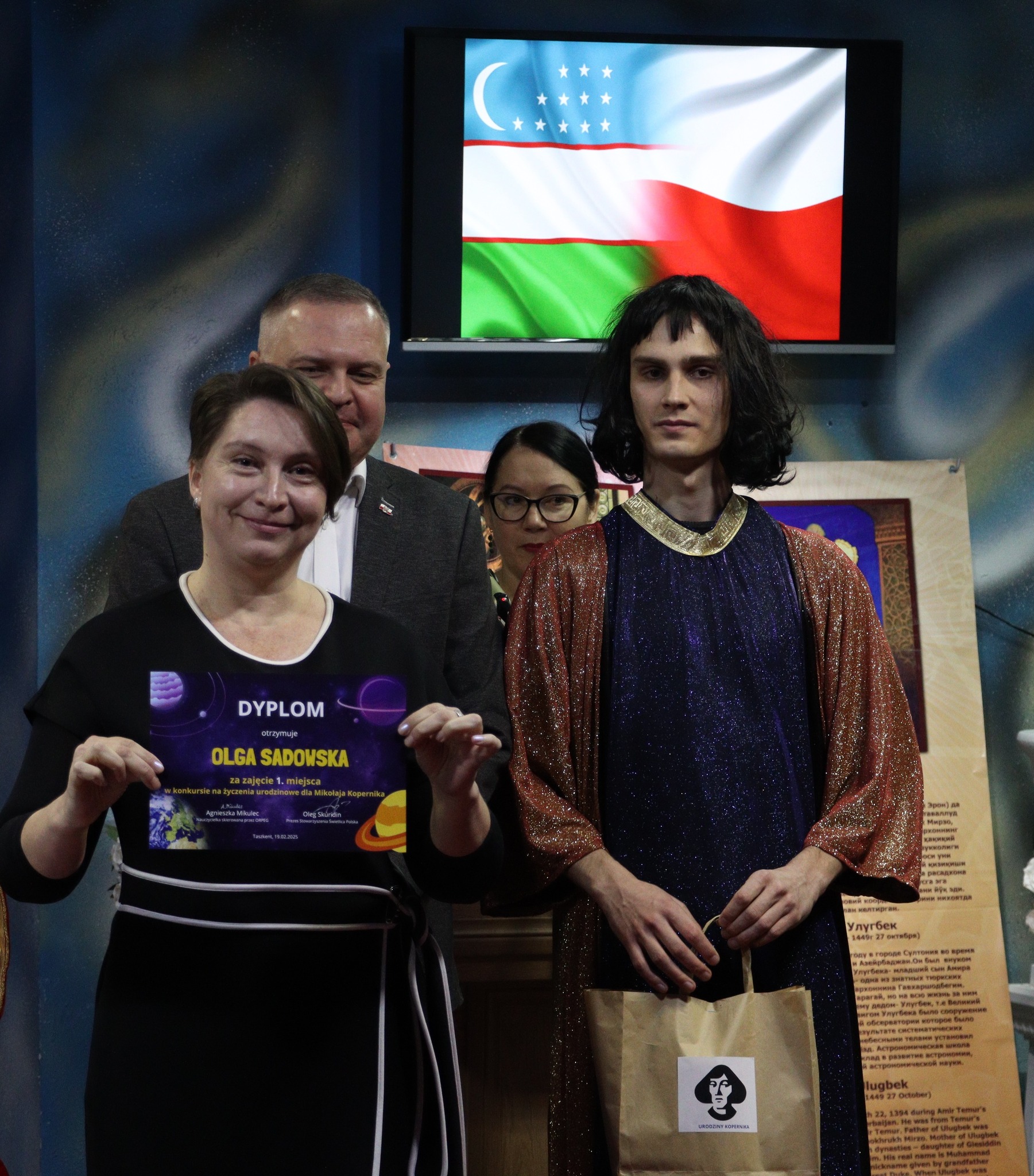 19 lutego członkowie „Świetlicy Polskiej” uczący się języka polskiego urządzili w Miejskim Planetarium w Taszkencie urodziny Mikołaja Kopernika. W programie wydarzenia przygotowanym przez Agnieszkę Mikulec, nauczycielkę języka polskiego skierowaną przez ORPEG do Uzbekistanu, nie zabrakło zarówno matematycznych łamigłówek, jak i tanecznych występów dzieci. W wieczorze na cześć wielkiego polskiego uczonego uczestniczyły Noiba Chikmatullajewna – dyrektorka planetarium oraz Madina Azimowa, ekspertka ds. edukacji. Nagrody dla uczestników konkursów i występującej młodzieży ufundował płk Tomasz Kuczko, Attaché Obrony przy Ambasadzie RP w Taszkencie. Dziękujemy organizatorom imprezy za ten kosmiczny wieczór.