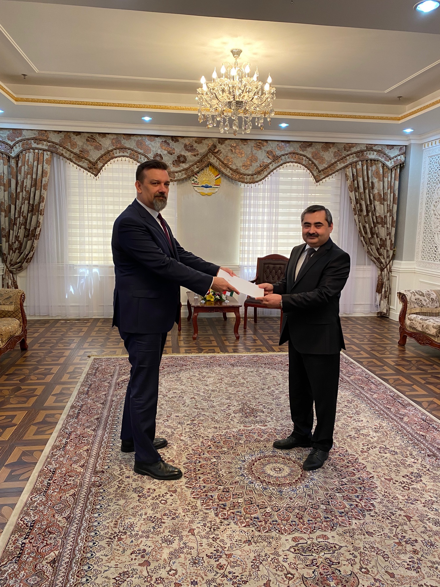 Wręczenie kopii listów uwierzytelniających przez ambasadora RP w Tadżykistanie pana Radosława Gruka