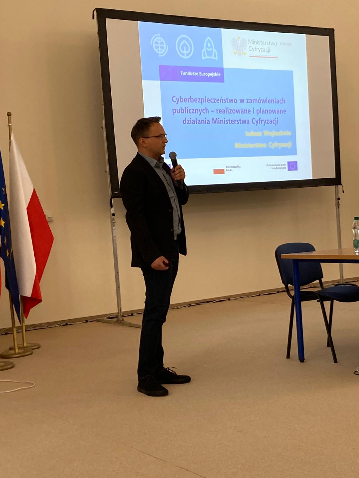- Łukasz Wojtachnio z Departamentu Cyberbezpieczeństwa Ministerstwa Cyfryzacji przedstawił realizowane i planowane działania resortu w tym zakresie.