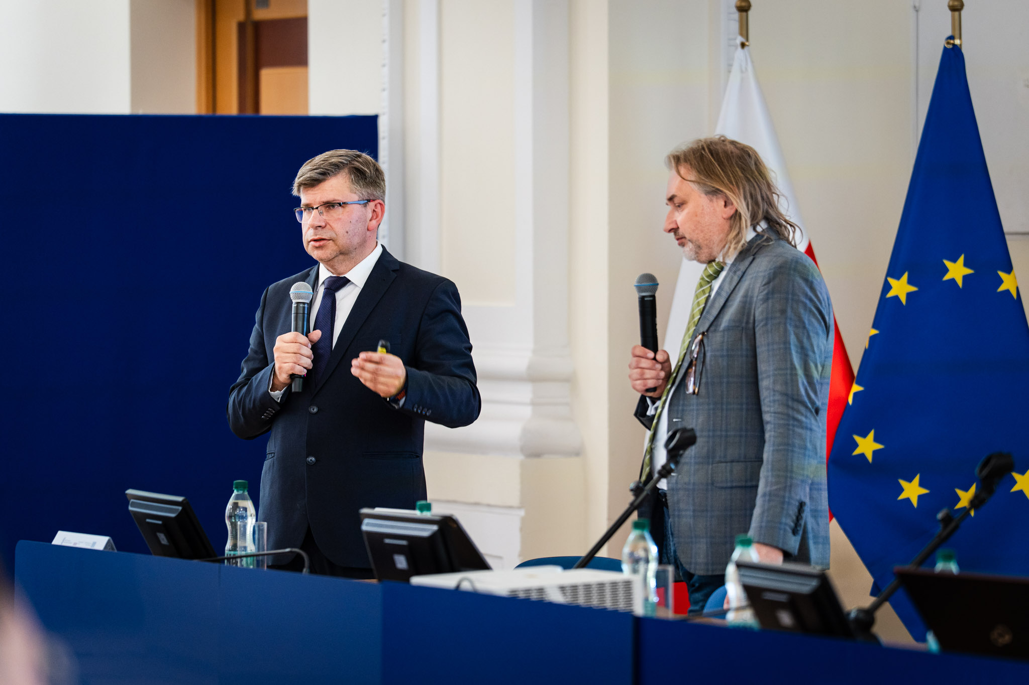 - Tomasz Chomicki z Polskiej Izby Informatyki i Telekomunikacji oraz dr hab. prof. UŚ Dariusz Szostek ze Związku Cyfrowa Polska omówili „blaski i cienie” cyberbezpieczeństwa w zamówieniach publicznych.