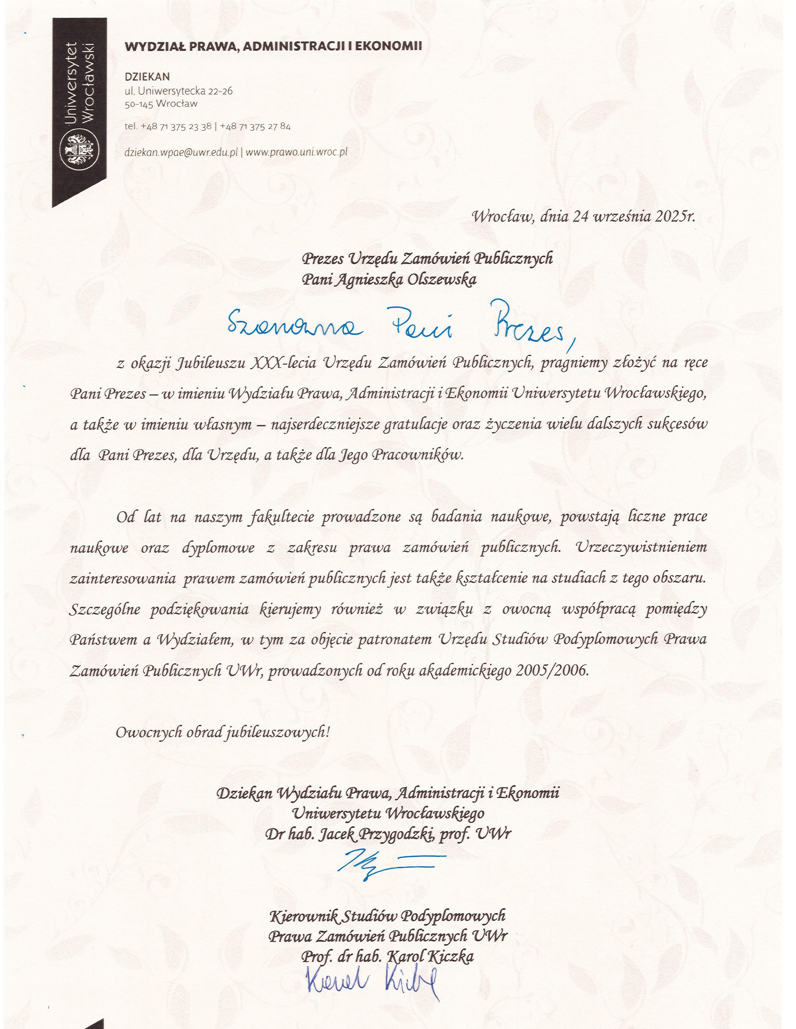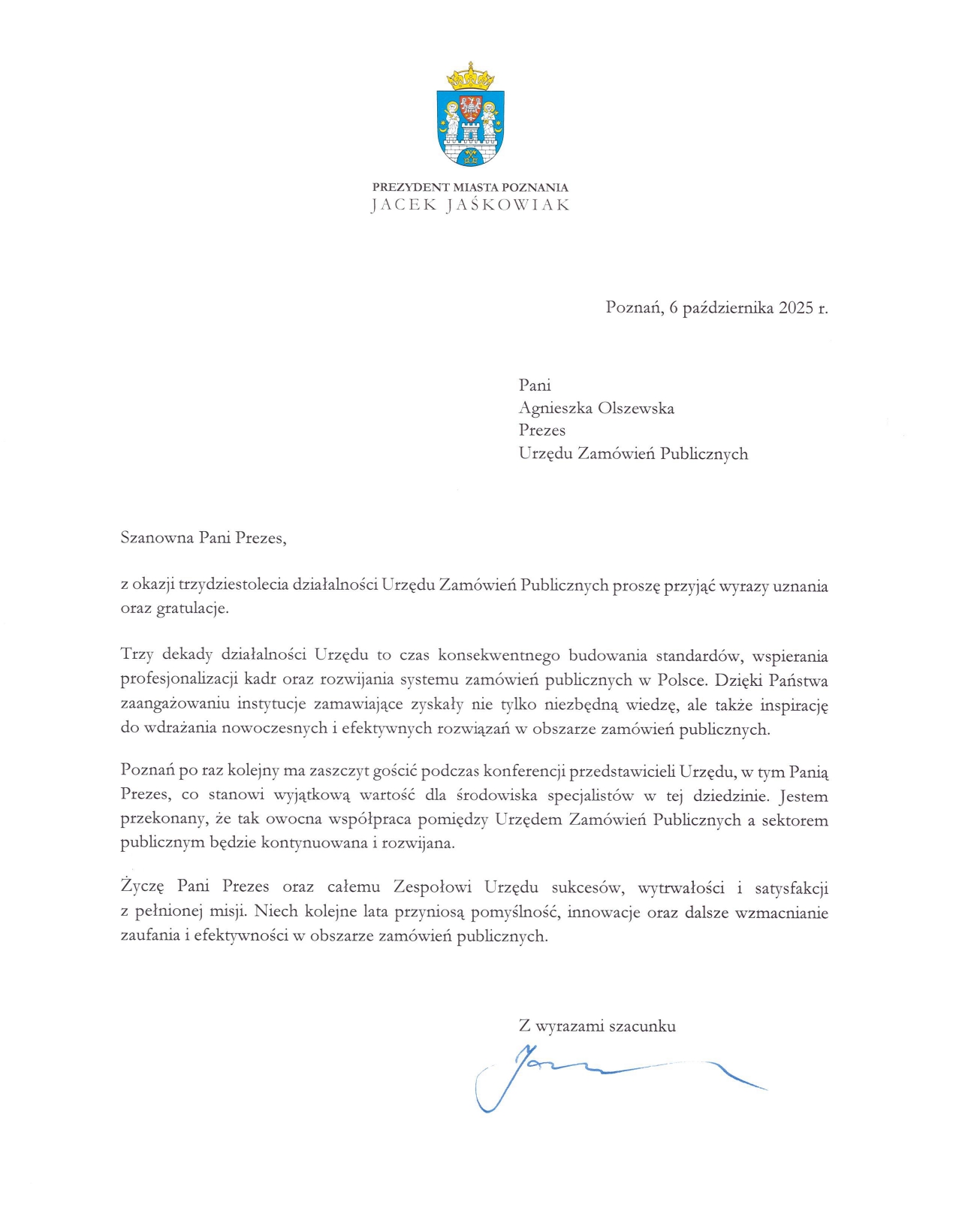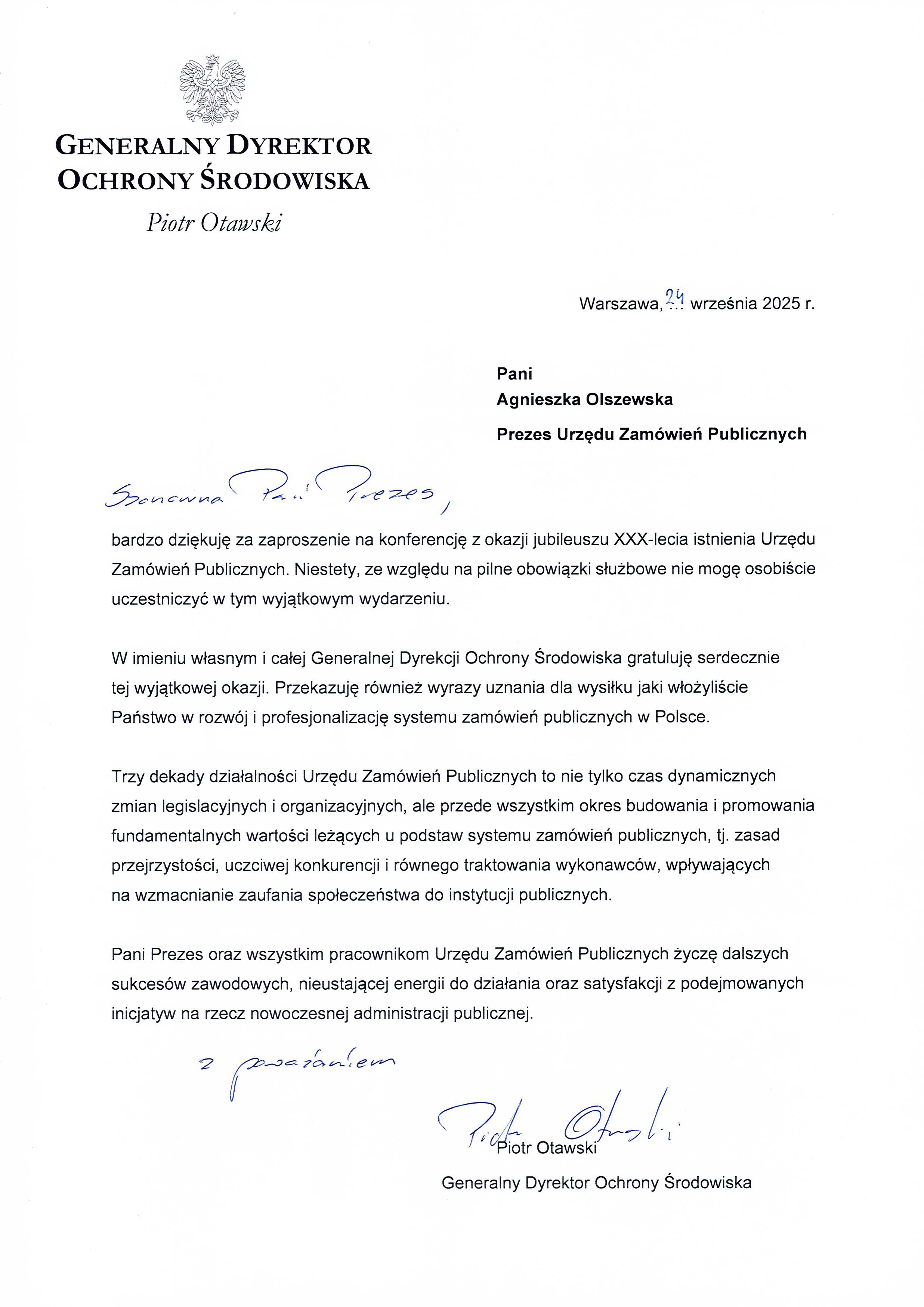 W Kancelarii Prezesa Rady Ministrów odbyła się Konferencja z okazji XXX-lecia Urzędu Zamówień Publicznych. Wydarzenie było okazją do podziękowania i uhonorowania pracowników Urzędu, którzy od trzech dekad z pasją i profesjonalizmem kształtują fundamenty systemu zamówień publicznych w Polsce. Była to również sposobność do nagrodzenia osób zaangażowanych w rozwój, edukację i promowanie zakupów publicznych wśród wszystkich uczestników rynku.