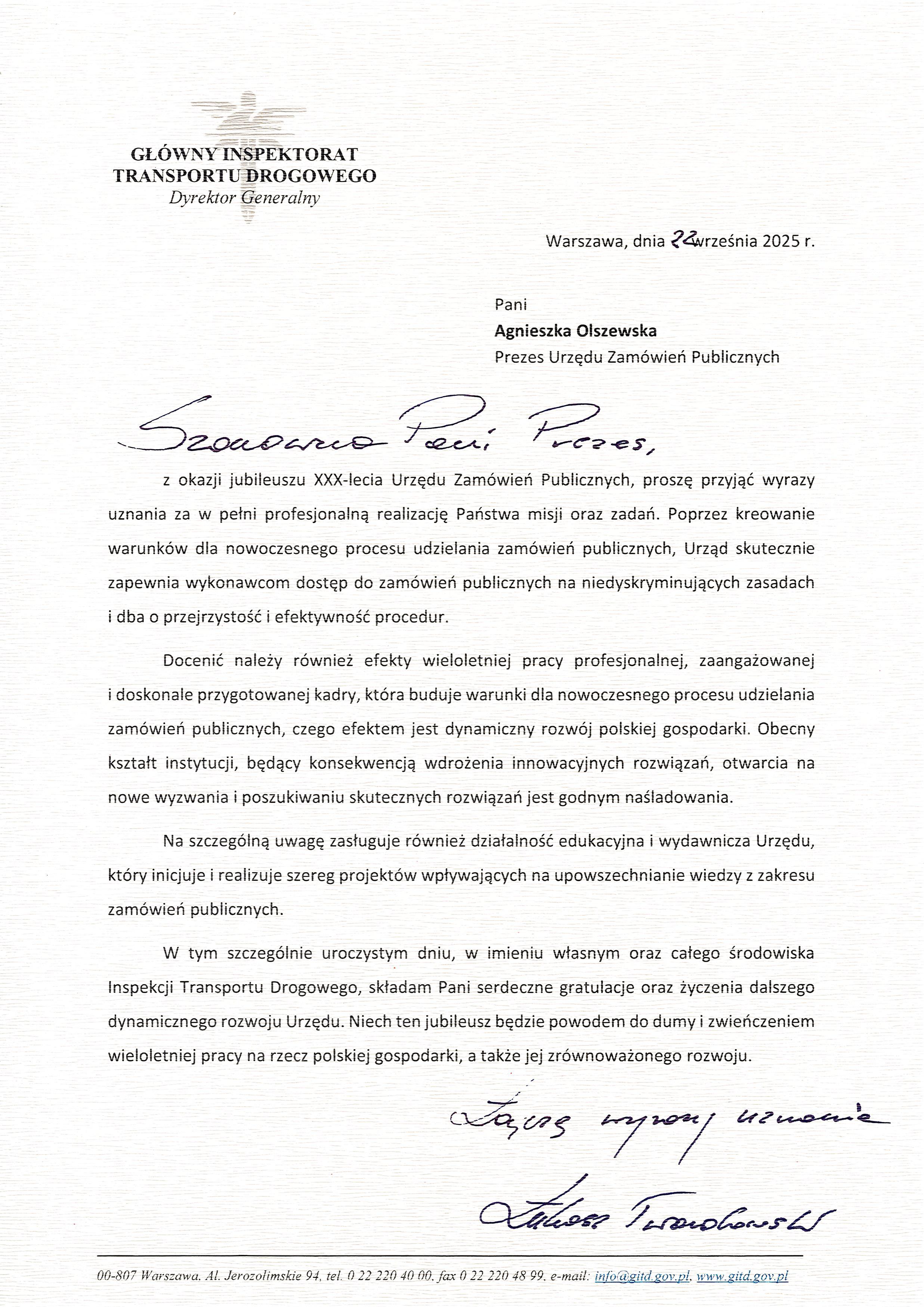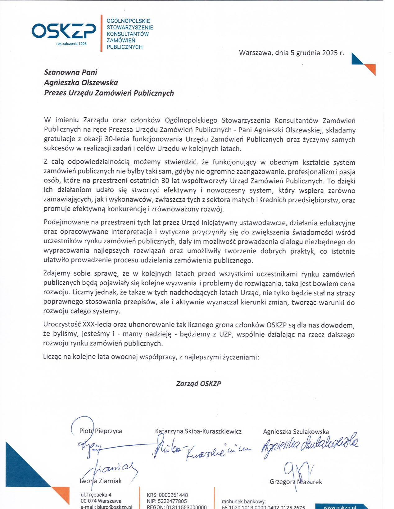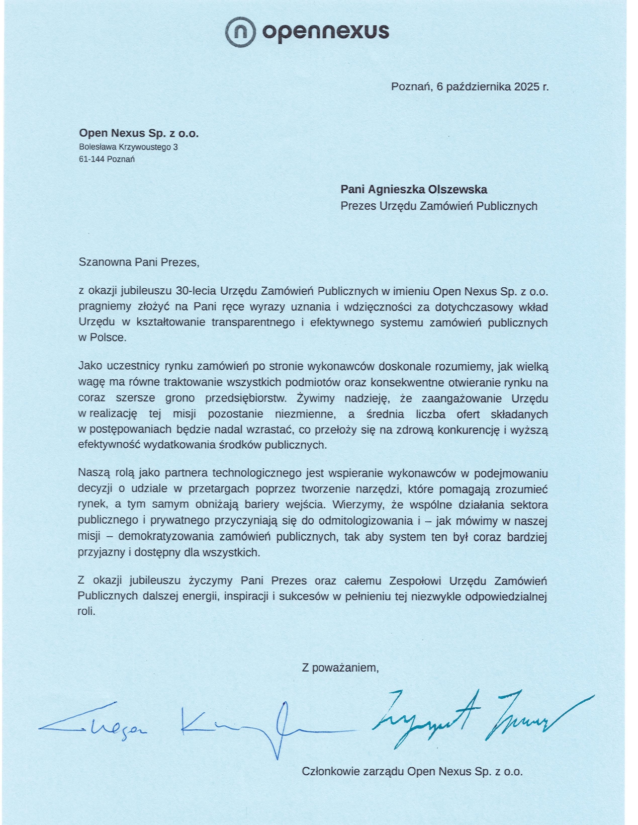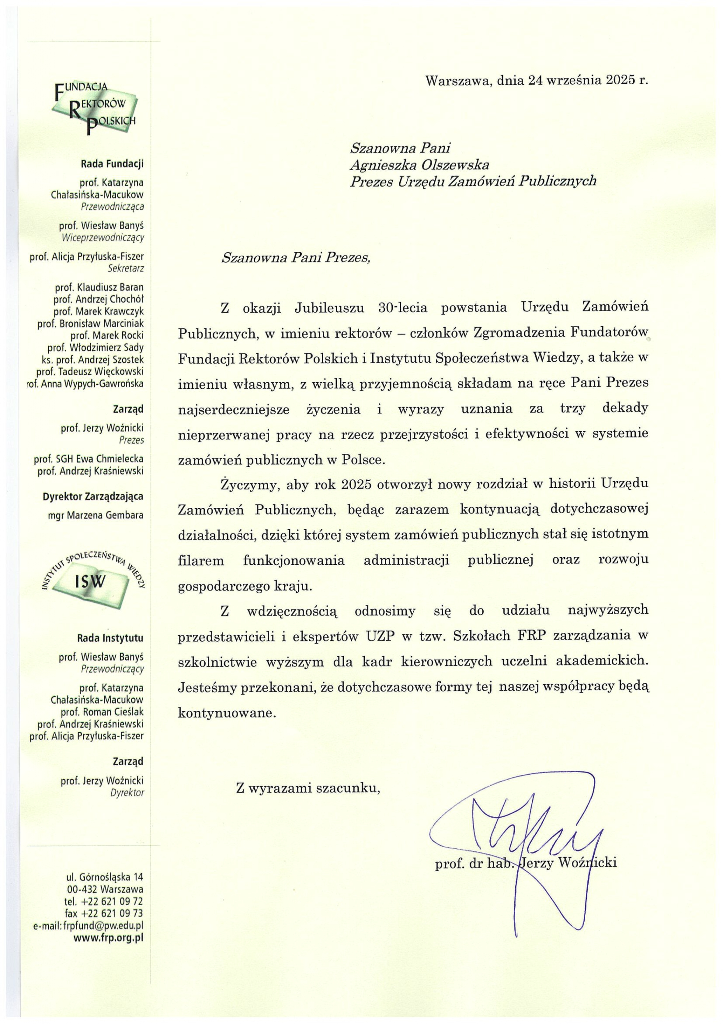 W Kancelarii Prezesa Rady Ministrów odbyła się Konferencja z okazji XXX-lecia Urzędu Zamówień Publicznych. Wydarzenie było okazją do podziękowania i uhonorowania pracowników Urzędu, którzy od trzech dekad z pasją i profesjonalizmem kształtują fundamenty systemu zamówień publicznych w Polsce. Była to również sposobność do nagrodzenia osób zaangażowanych w rozwój, edukację i promowanie zakupów publicznych wśród wszystkich uczestników rynku.