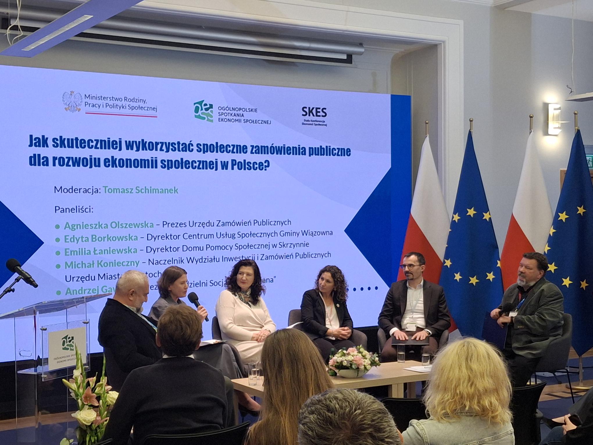 14 listopada 2025 r. Agnieszka Olszewska Prezes Urzędu Zamówień Publicznych uczestniczyła w panelu dyskusyjnym podczas Ogólnopolskiego Forum Ekonomii Społecznej. Sesja poświęcona była temu, jak skuteczniej wykorzystywać społeczne zamówienia publiczne na rzecz rozwoju ekonomii społecznej w Polsce.