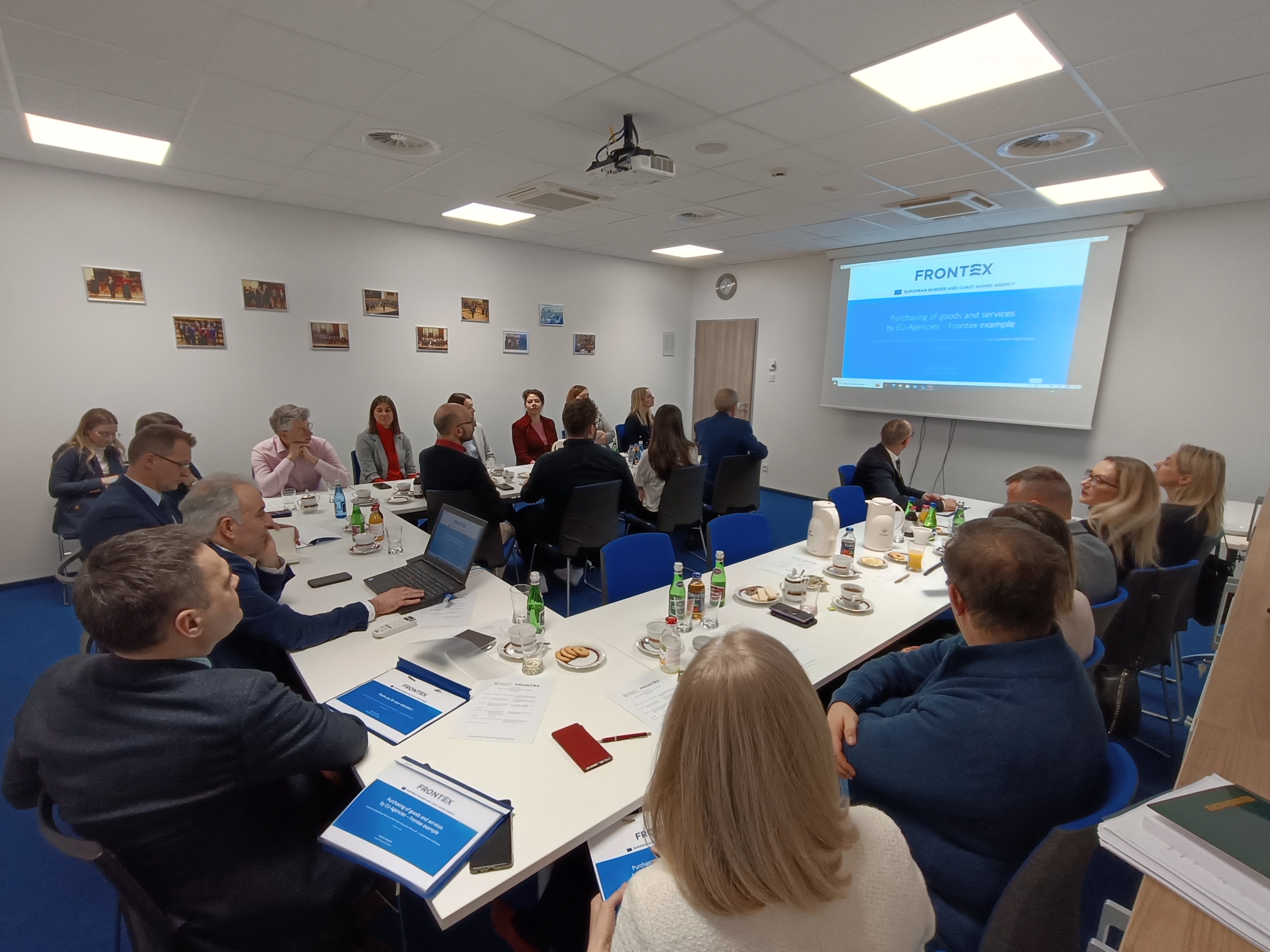 Przedstawiciele Europejskiej Agencji Straży Granicznej i Przybrzeżnej (FRONTEX) gościli w siedzibie UZP. Delegacja FRONTEXu obejmowała osoby zajmujące się realizacją zamówień publicznych, a na jej czele stał Christos Georgiadis, Kierownik jednostki zajmującej się tym zagadnieniem. Ze strony Urzędu Zamówień Publicznych udział w spotkaniu wzięli Hubert Nowak Prezes UZP oraz przedstawiciele Departamentu Unii Europejskiej i Współpracy Międzynarodowej, a także Departamentu Prawnego. Wizyta było okazją do omówienia praktyki zamówieniowej Frontexu oraz kluczowych aspektów funkcjonowania systemu zamówień publicznych w Polsce.