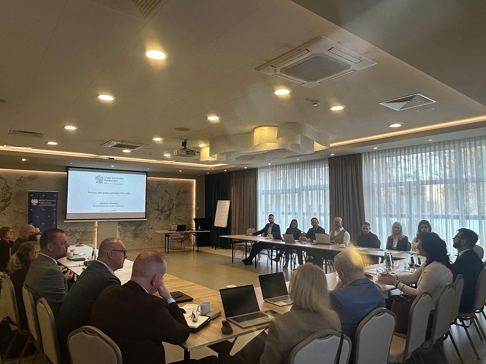 Spotkanie otworzyła Agnieszka Olszewska, Prezes UZP oraz Przemysław Grosfeld, Wiceprezes UZP. W pierwszej części zaprezentowane zostały założenia Polityki zakupowej państwa na lata 2026–2029, ze szczególnym uwzględnieniem działań w obszarze profesjonalizacji kadr zamówieniowych. Wprowadzenie to stanowiło punkt wyjścia do dalszych rozmów.