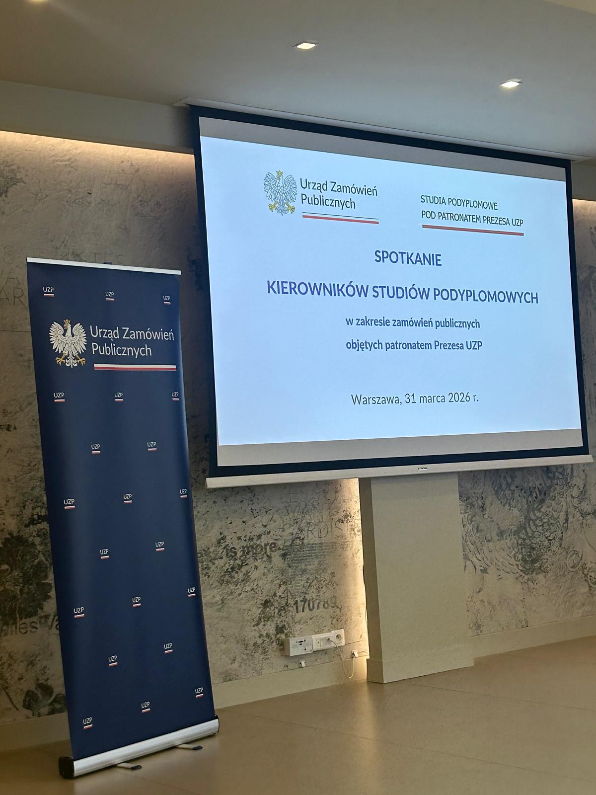 31 marca 2026 r. odbyło się spotkanie kierowników studiów podyplomowych w zakresie zamówień publicznych objętych patronatem Prezesa UZP . W wydarzeniu uczestniczyli przedstawiciele uczelni prowadzących studia podyplomowe, a także kierownictwo Urzędu.