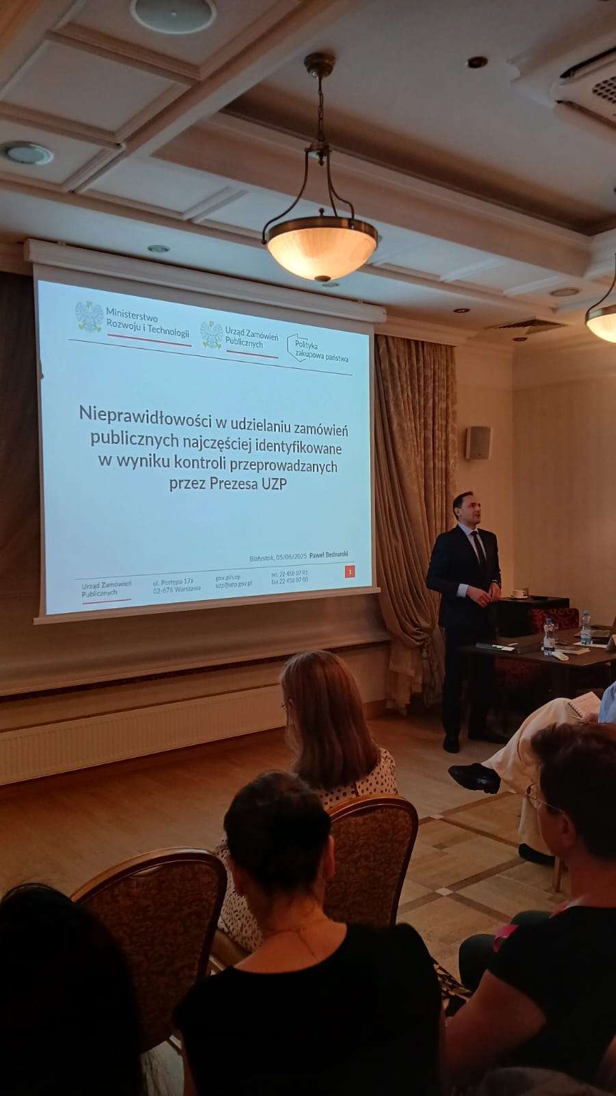 Anna Węcławska z Departamentu Prawnego UZP omówiła wybrane aspekty ustawy Pzp, a Paweł Bednarski z Departamentu Kontroli Zamówień Publicznych przedstawił najczęściej identyfikowane nieprawidłowości na podstawie kontroli Prezesa UZP.