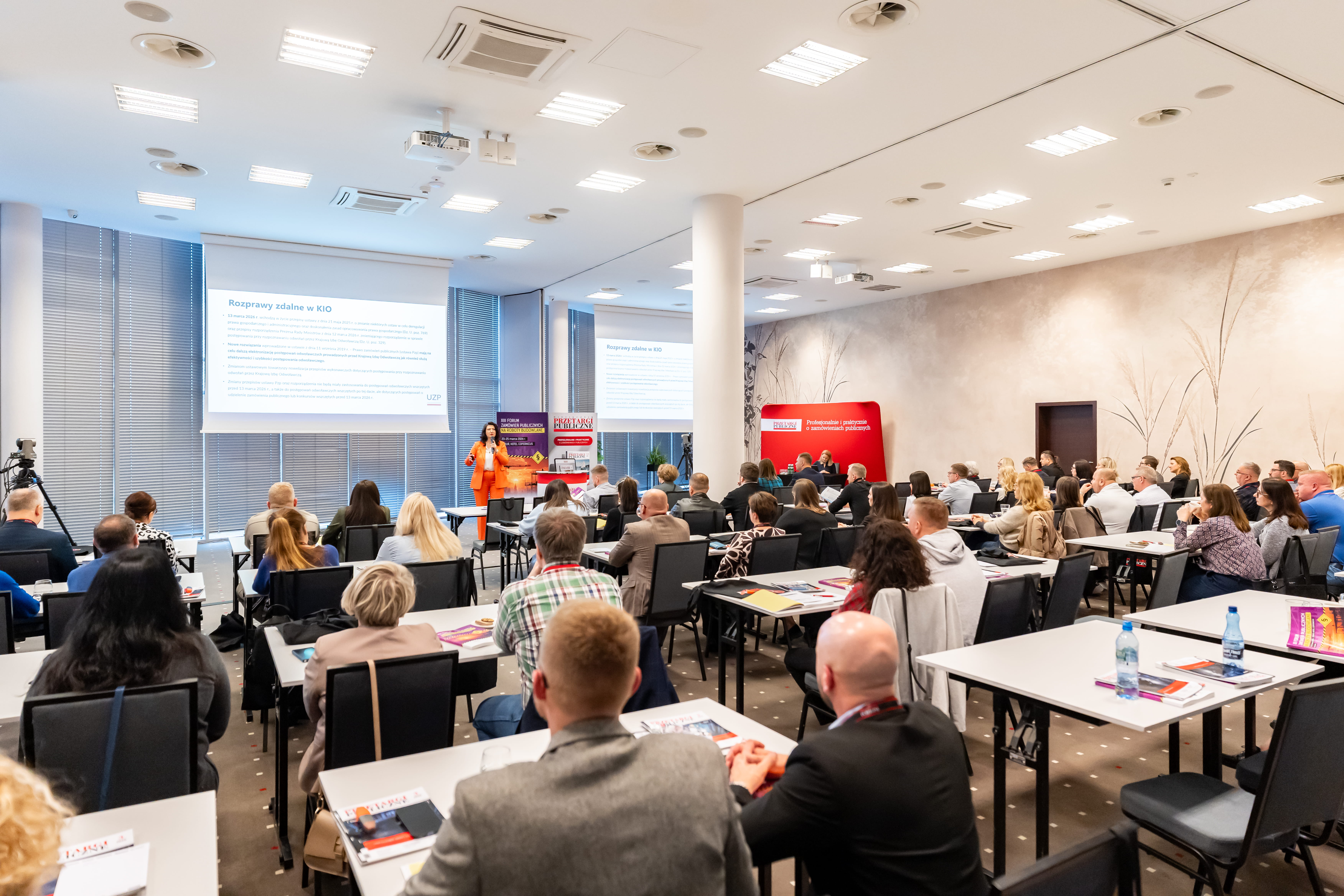 W pierwszym dniu wydarzenia, udział wzięła p. Agnieszka Olszewska, Prezes UZP. W swojej prezentacji wskazała kierunki działań UZP w 2026 r. oraz przedstawiła założenia Polityki zakupowej państwa na lata 2026–2029. Pani Prezes omówiła także najnowsze zmiany legislacyjne, w tym wprowadzenie rozpraw zdalnych przed KIO. W swojej wypowiedzi podkreśliła znaczenie zamówień publicznych jako narzędzia wspierającego rozwój gospodarki, innowacyjność i bezpieczeństwo państwa.