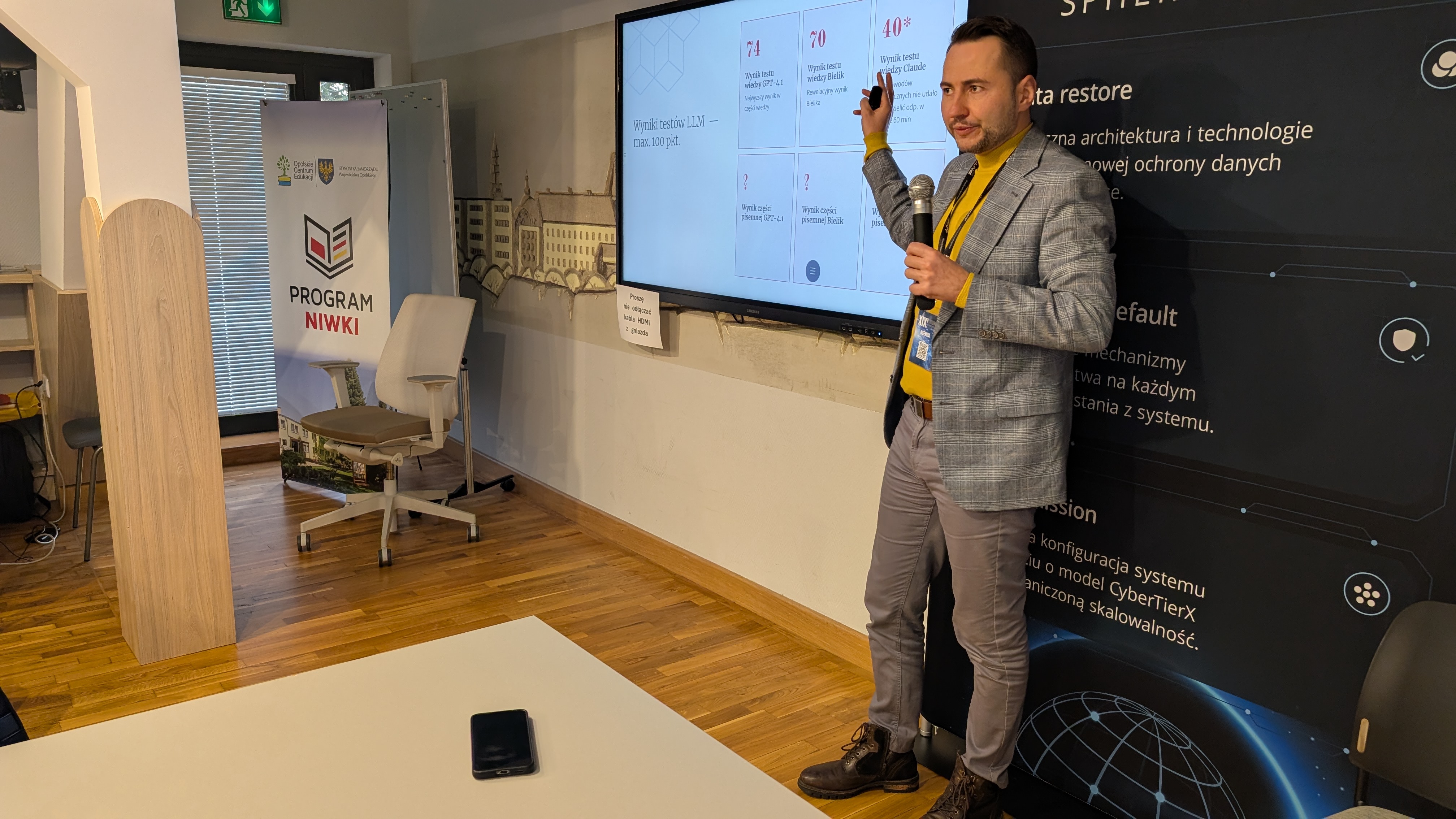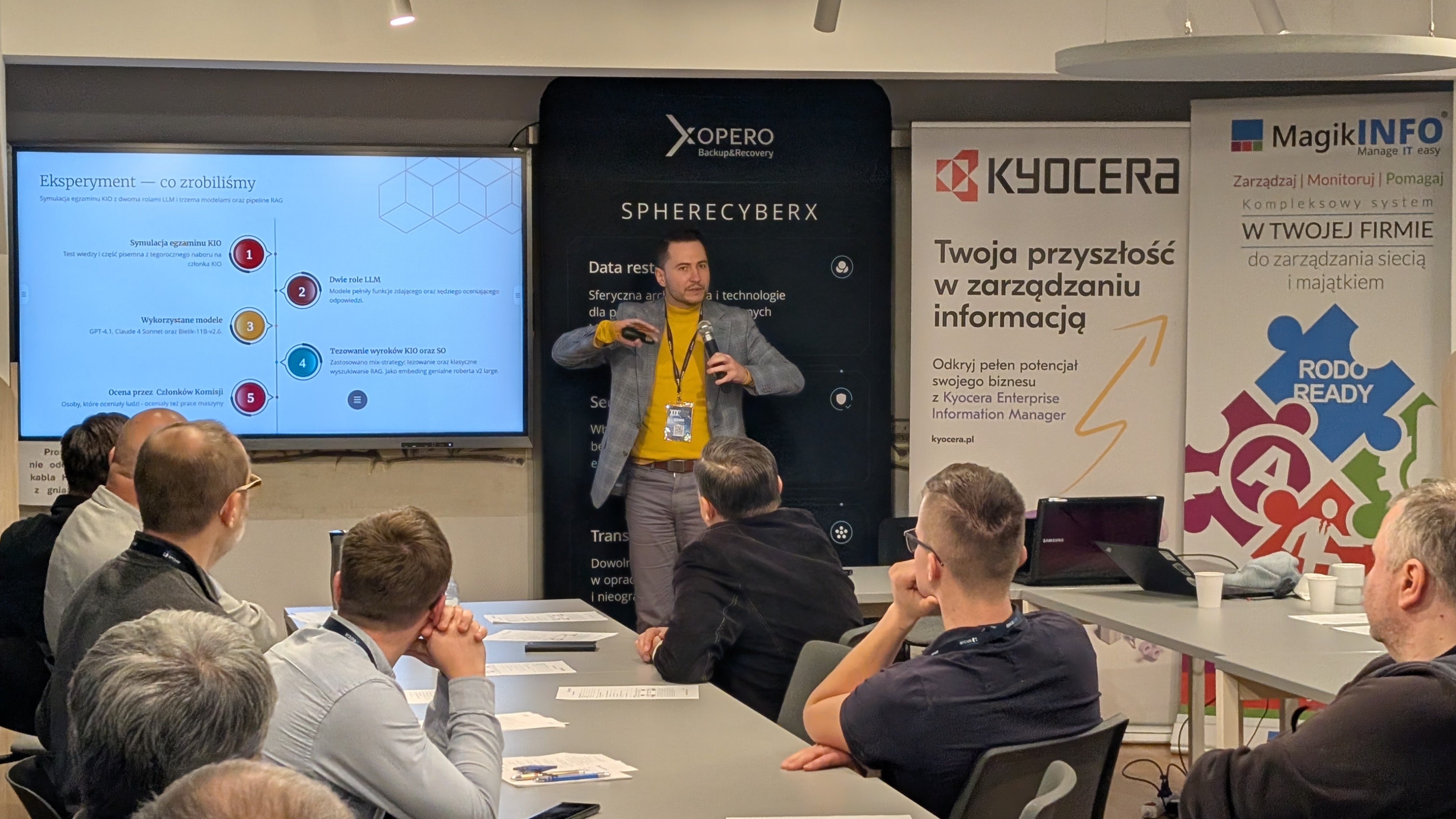 W wydarzeniu wziął udział Robert Król, Dyrektor Departamentu Danych i Informatyzacji UZP. W swoim wystąpieniu poruszył temat sztucznej inteligencji w orzecznictwie. To pokłosie m.in. eksperymentu realizowanego w UZP oraz KIO w ramach którego sprawdzano, czy modele językowe są w stanie zdać egzamin na członka Krajowej Izby Odwoławczej. Link do raportu z badań dostępny jest w sekcji „Materiały”.