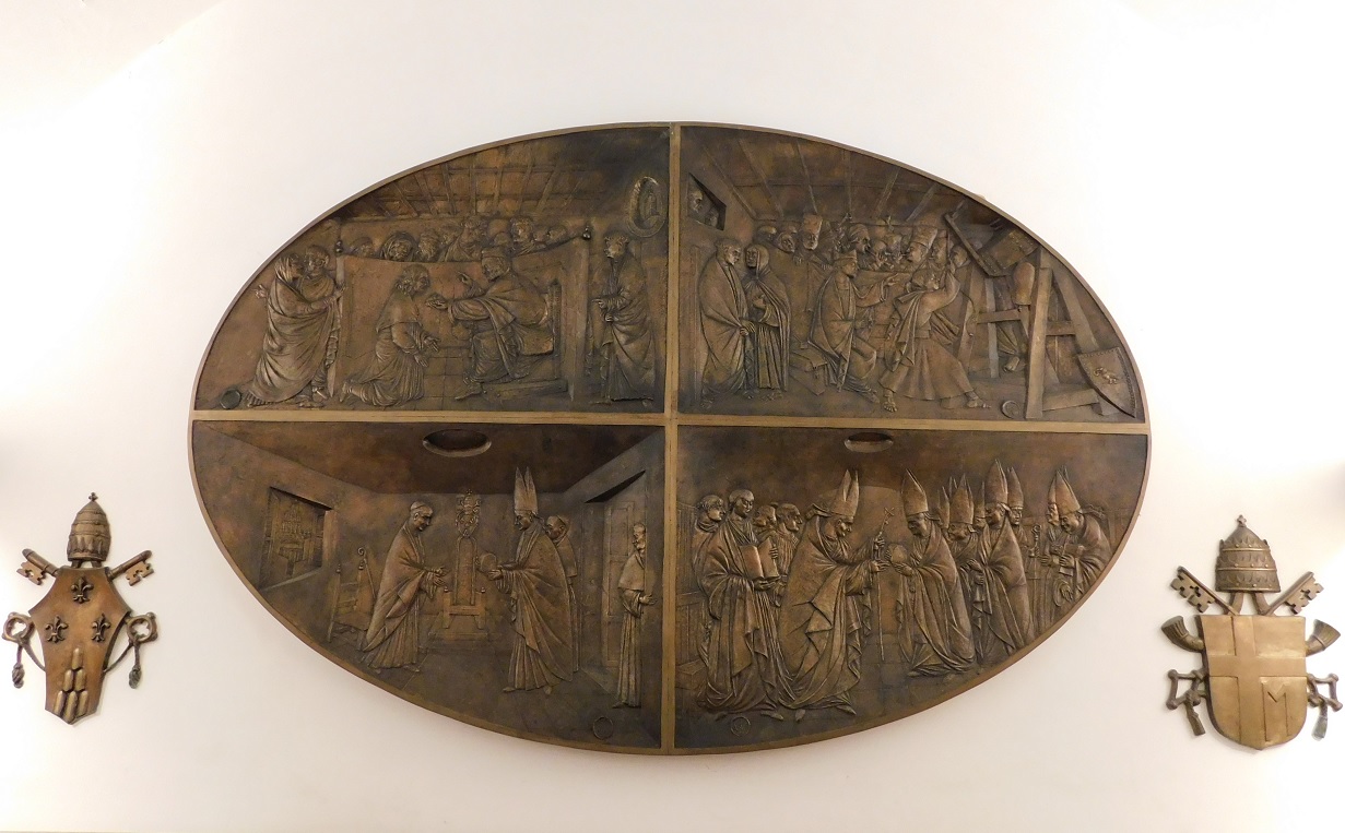 Fu, infatti, Giovanni Paolo II a consacrare, quarant’anni or sono l’8 ottobre 1980, la nuova cappella dedicata alla Magna Domina Hungarorum. Tale evento solenne è stato immortalato in uno dei riquadri del grande pannello di bronzo collocato in fondo alla cappella, opera dello scultore ungherese-italiano Amerigo Tot.