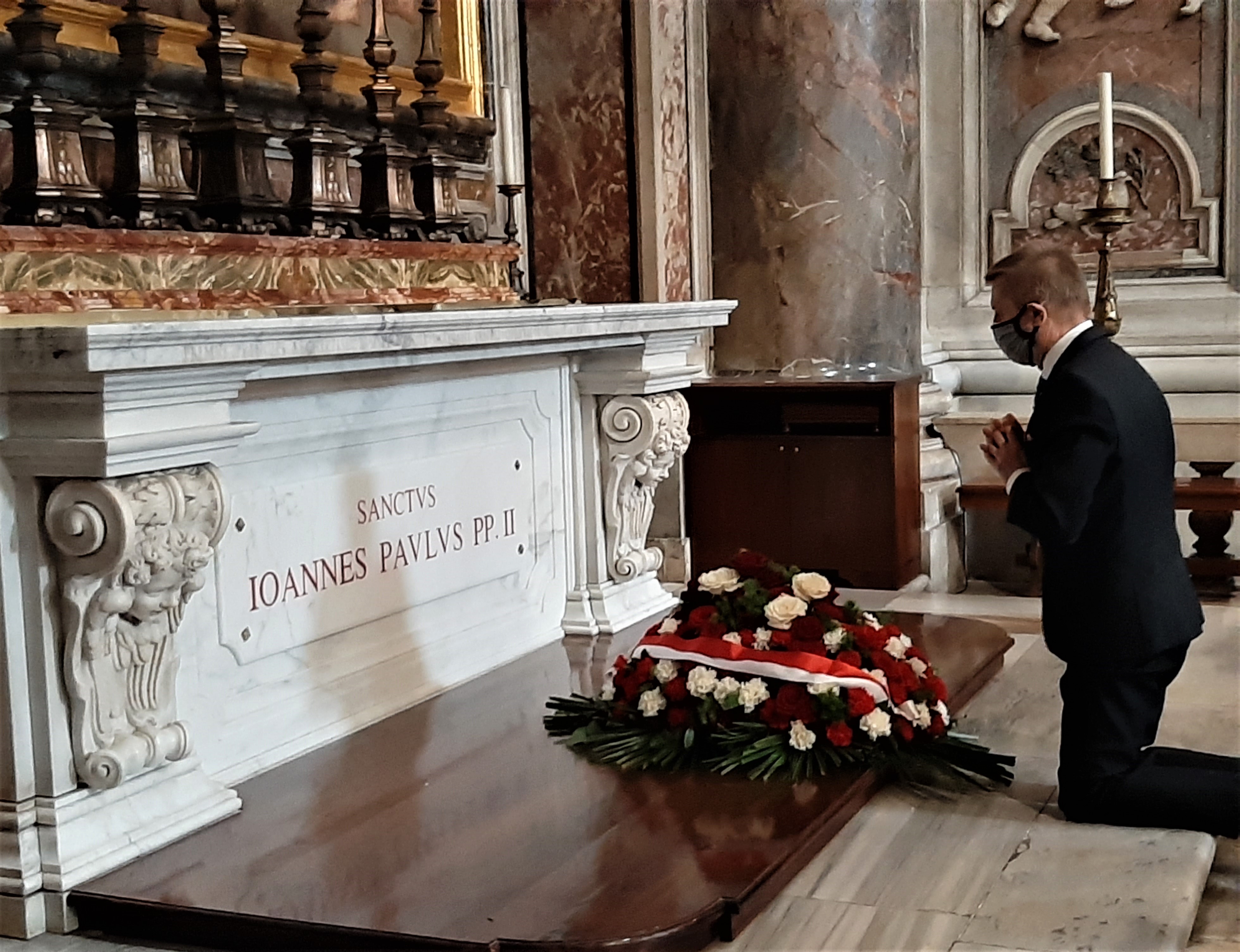 L’Ambasciatore Janusz Kotański insieme alla Consorte hanno deposto i fiori sulla tomba di San Giovanni Paolo II in occasione del 16° anniversario della sua scomparsa.