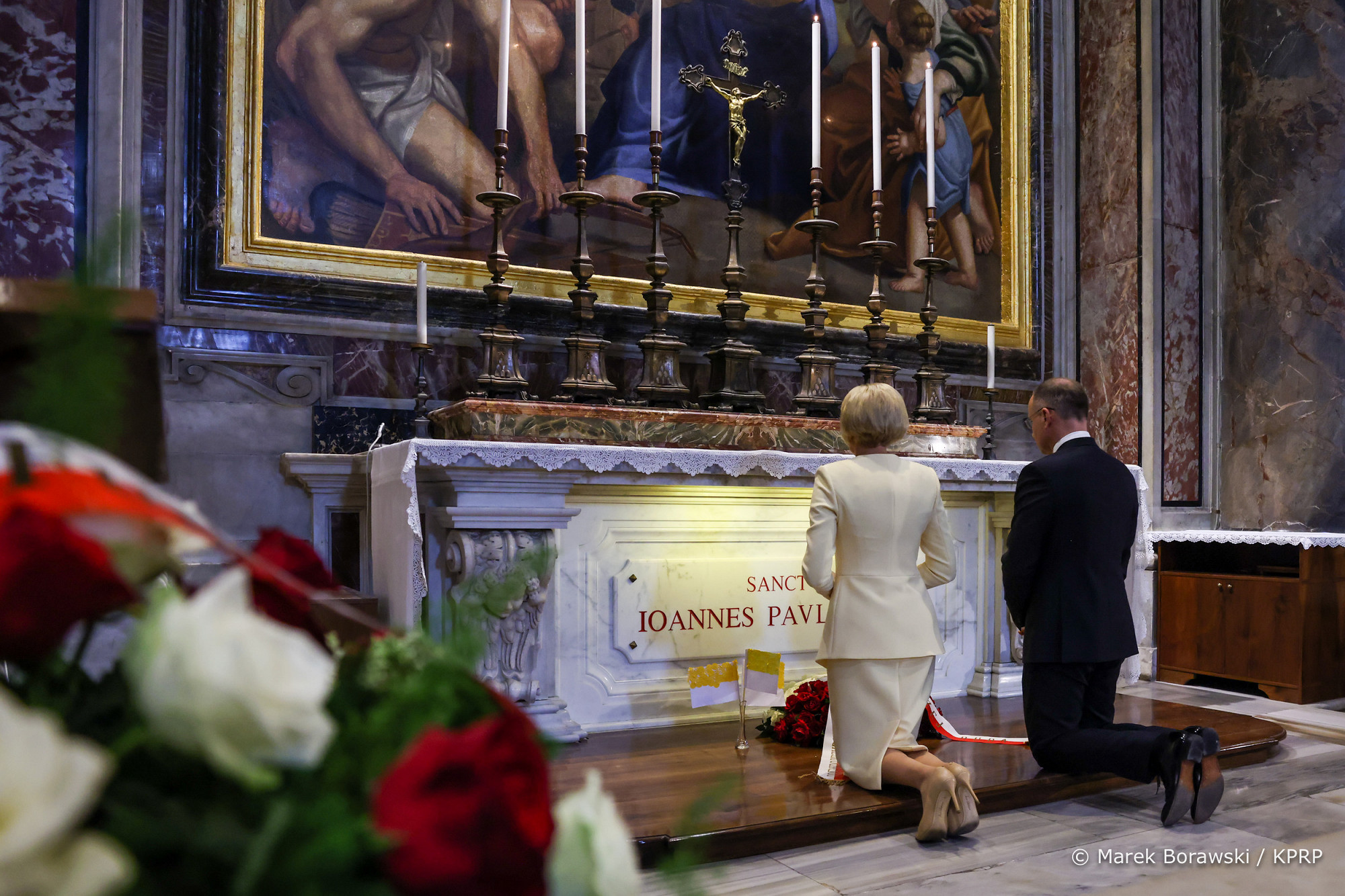 A conclusione della celebrazione liturgica il Presidente della Repubblica Andrzej Duda, insieme alla Consorte e la delegazione, si è recato sulla tomba di San Giovanni Paolo II dove ha deposto una corona di fiori.