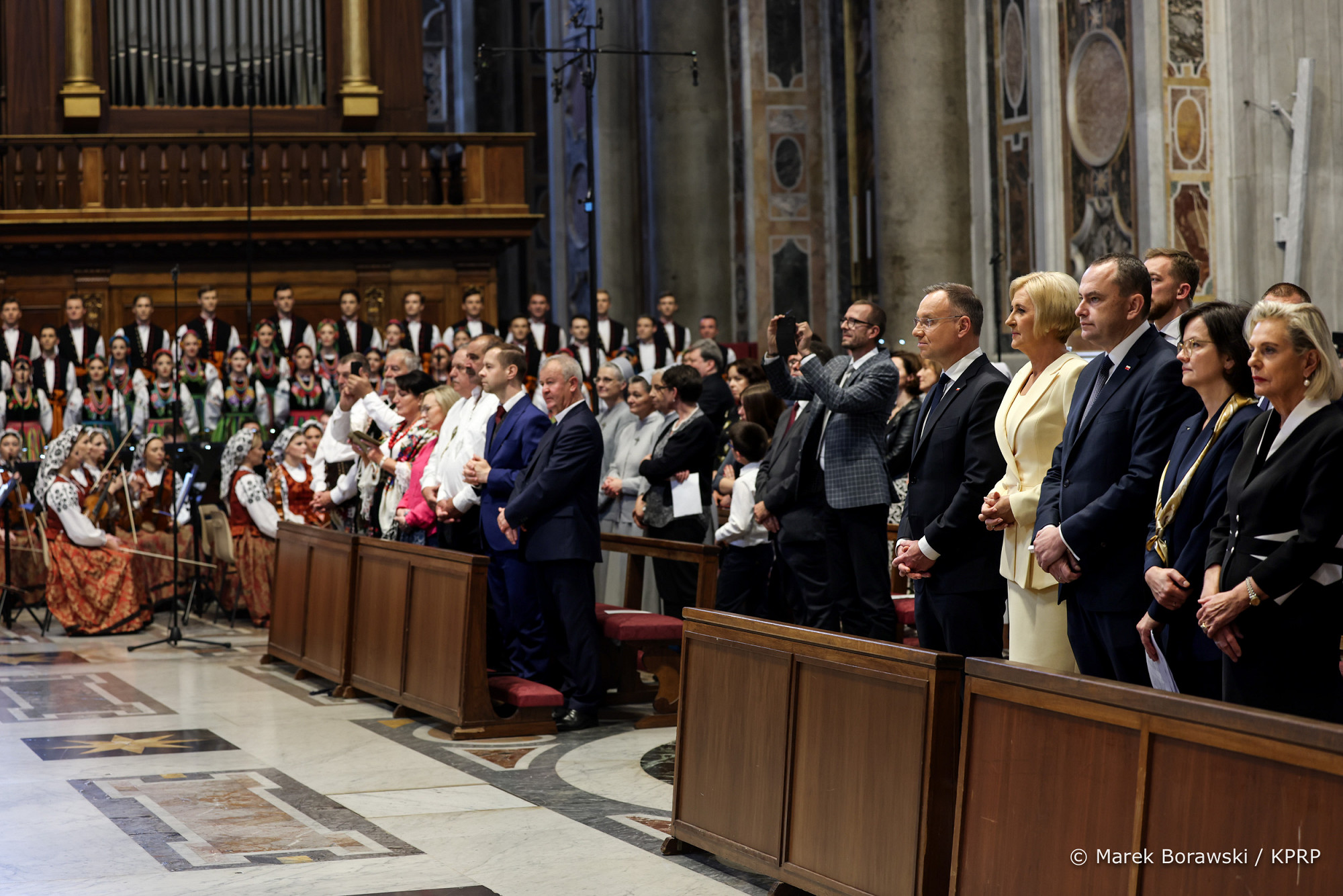 Oltre alla Coppia Presidenziale e ai membri della delegazione ufficiale, sia alla Messa che al concerto hanno partecipato i rappresentanti della Curia romana, del corpo diplomatico accreditato presso la Santa Sede e della società civile, i membri della comunità polacca in Italia e i pellegrini.