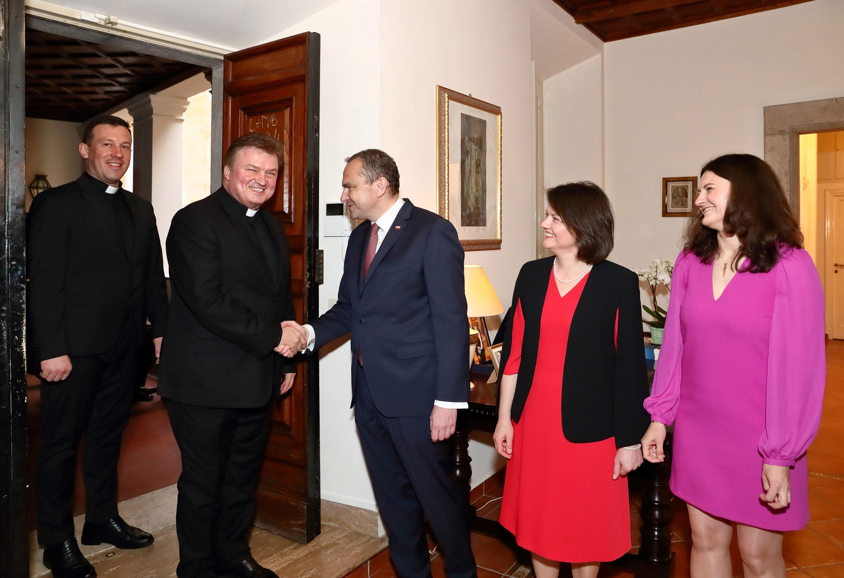 Successivamente, ha ricordato sia la cerimonia della beatificazione della Famiglia Ulma tenutasi a Markowa a settembre dello scorso anno sia la commemorazione dell’80° anniversario dell’uccisione degli Ulma e degli Ebrei che essi nascondevano nella loro casa per mano dei tedeschi. Grazie all’impegno dell’Ambasciata, questo anniversario è stato commemorato a marzo con la piantumazione dei meli – innesti creati da Józef Ulma – nei Giardini Vaticani, nel giardino della Casa Generalizia della Congregazione dei Resurrezionisti e nella Casa Generalizia delle Suore di Nazareth.