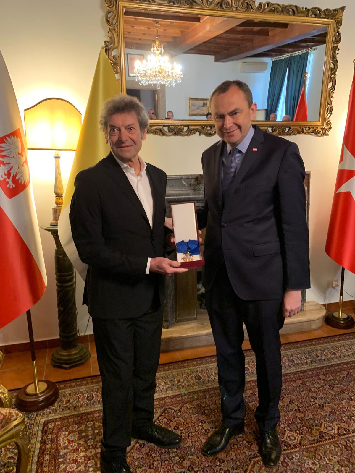L’onorificenza è stata conferita dall’Ambasciatore di Polonia presso la Santa Sede Adam Kwiatkowski, a seguito dell’ordinanza del Presidente della Repubblica di Polonia, Andrzej Duda, che lo scorso novembre aveva insignito il sacerdote “in riconoscimento dei suoi meriti eccezionali nel promuovere la cultura polacca e per la sua attività a favore della trasformazione democratica in Polonia”.