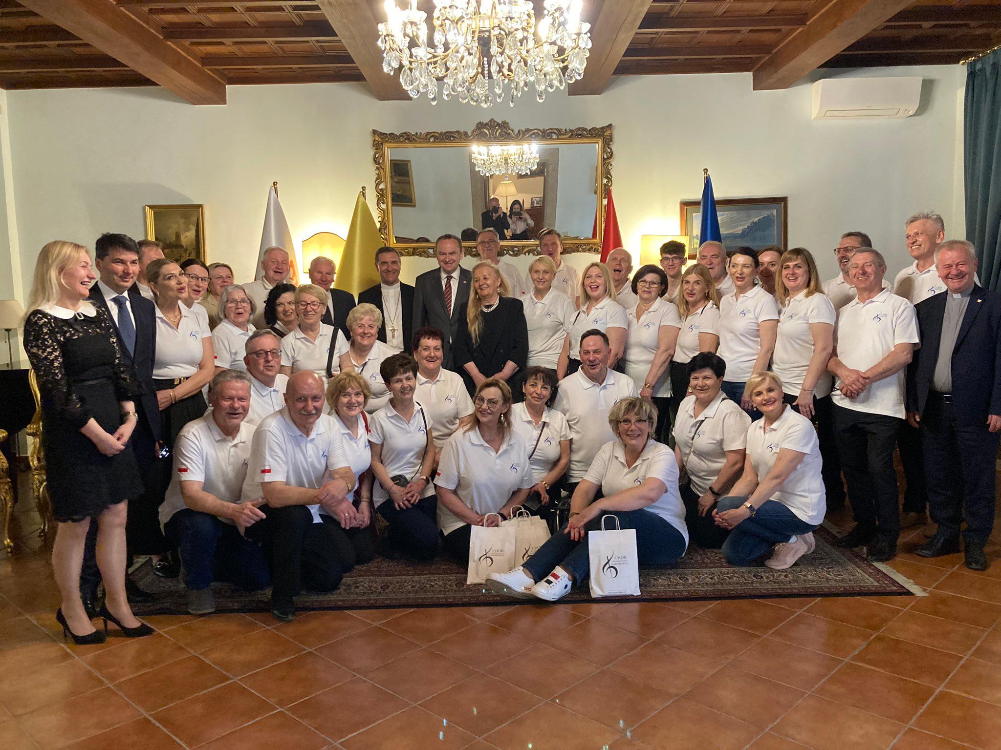 Nella mattinata del 17 aprile il Coro della Canzone Nazionale Polacca originario di Bielsk Podlaski ha partecipato all’udienza generale dal Santo Padre Francesco a conclusione della quale ha avuto l’occasione di esibirsi davanti al Pontefice e presentare i 30 anni della sua attività. In seguito, i membri del coro insieme al vescovo di Drohiczyn Piotr Sawczuk e gli sponsor Suempol sono stati ricevuti dell’Ambasciatore di Polonia presso la Santa Sede Adam Kwiatkowski.