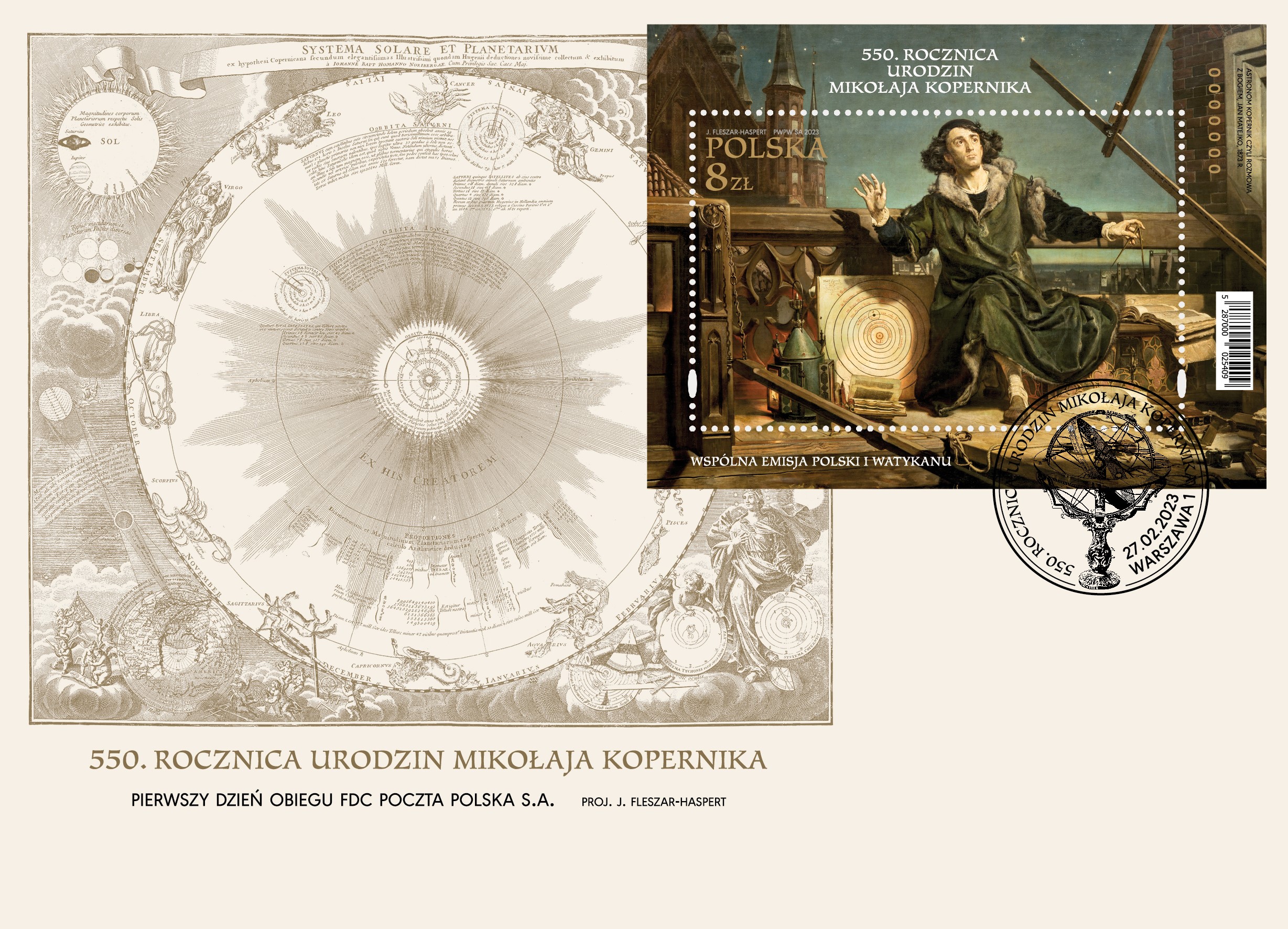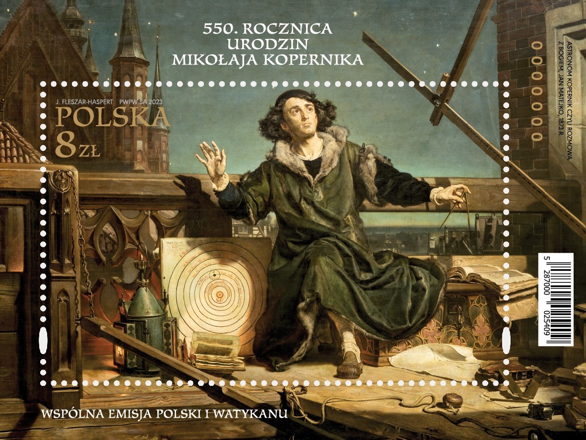 Le Poste Polacche e le Poste Vaticane in occasione del 550° anniversario della nascita dell’astronomo polacco Niccolò Copernico (Mikołaj Kopernik) hanno preparato un’emissione congiunta di un francobollo che entra in circolazione il 27 febbraio 2023.