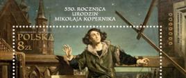 L’immagine riportata nella miniatura filatelica (progetto di Joanna Fleszar-Haspert) riproduce l’opera del pittore polacco Jan Matejko, vissuto nel XIX secolo, “Astronomo Copernico o Conversazione con Dio" realizzato dal tra il 1871 e il 1873 in occasione del 400° anniversario della nascita dell’astronomo. Il quadro, precedentemente esposto nella National Gallery di Londra e nel Metropolitan Museum di New York, si trova attualmente nel Museo dell’Università Jagellonica di Cracovia.