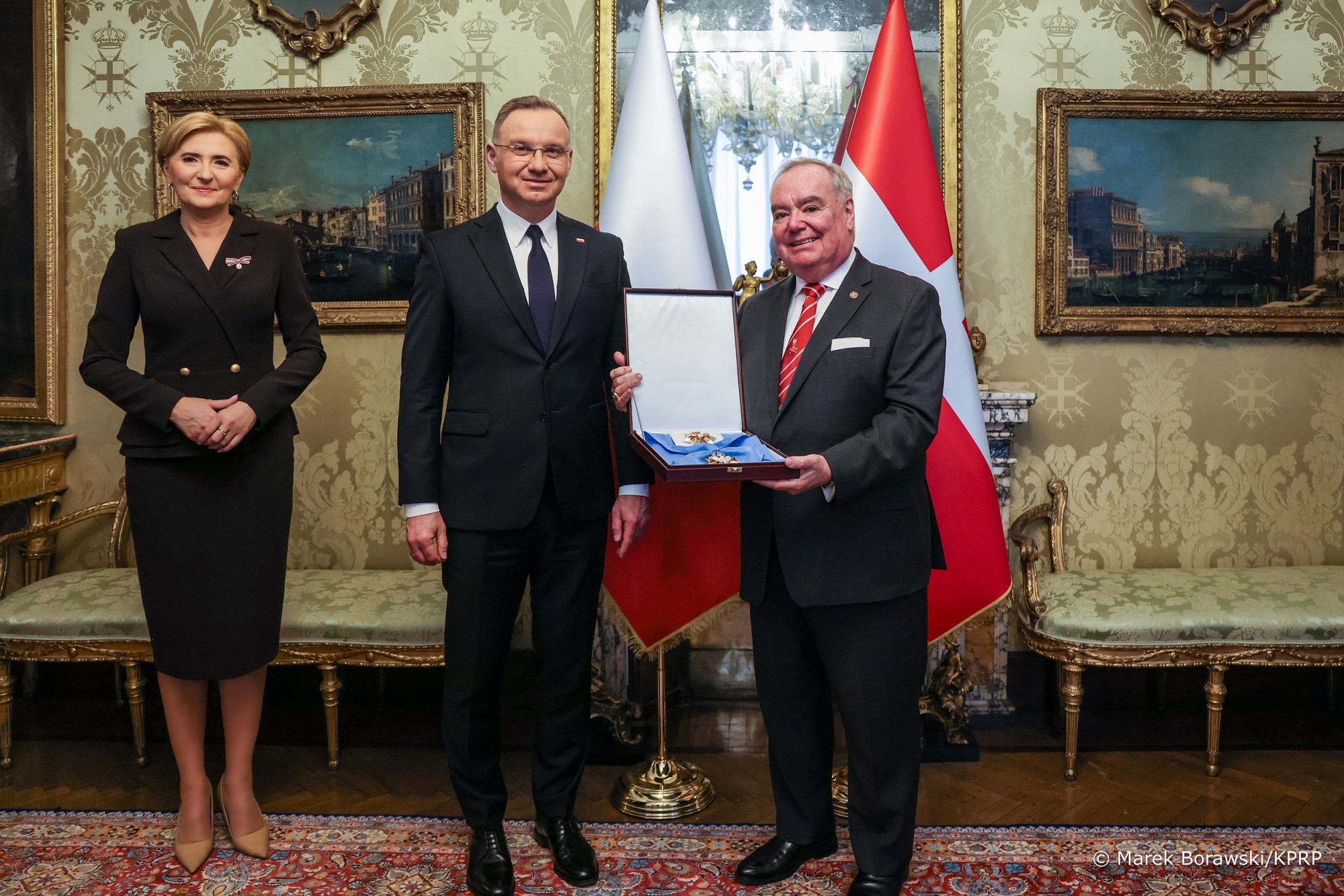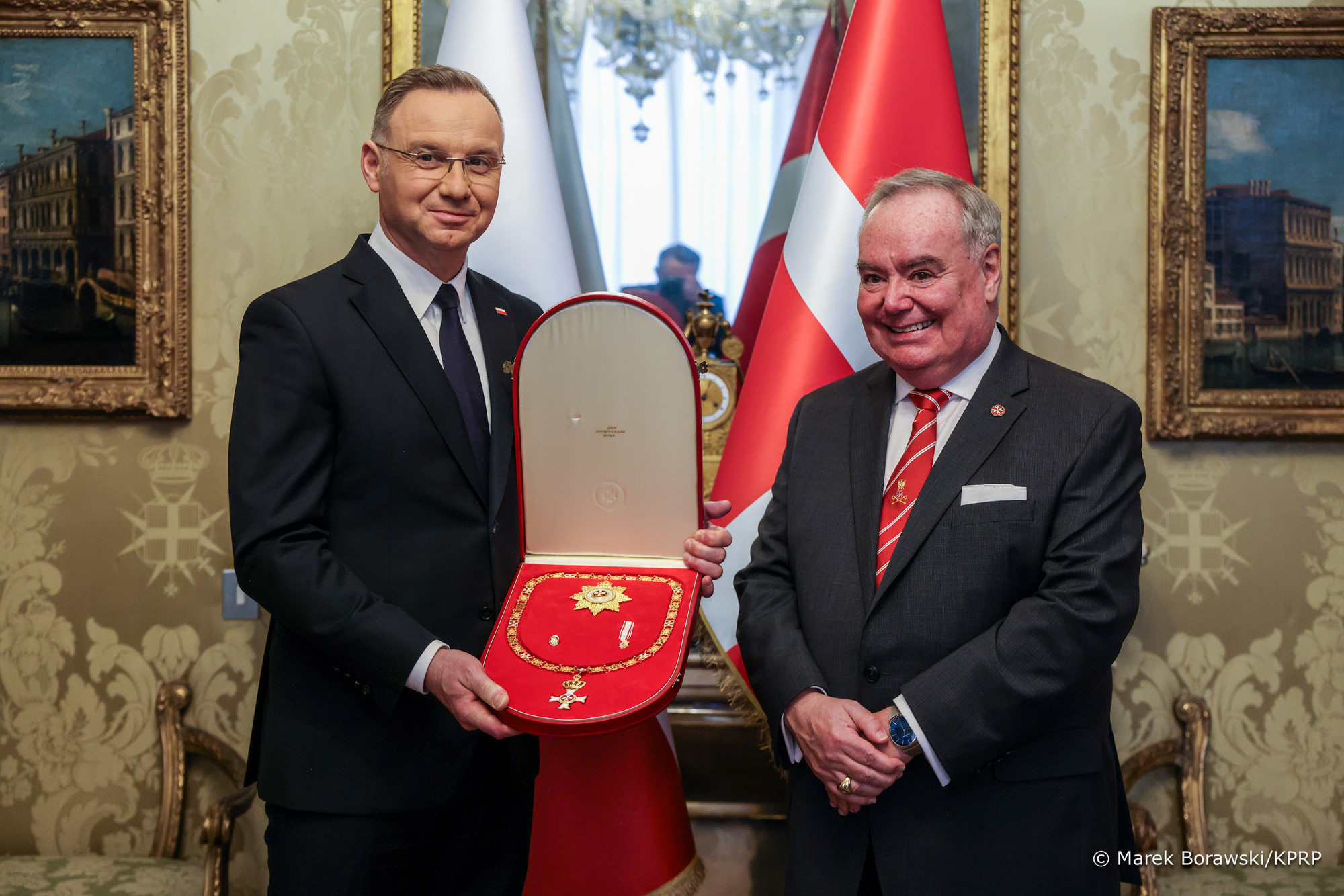 Il Presidente Duda ha conferito al Gran Maestro l’Ordine dell’Aquila Bianca, mentre Fra’ John Dunlap ha insignito il Presidente della Repubblica del Collare dell’Ordine pro Merito Melitensi.