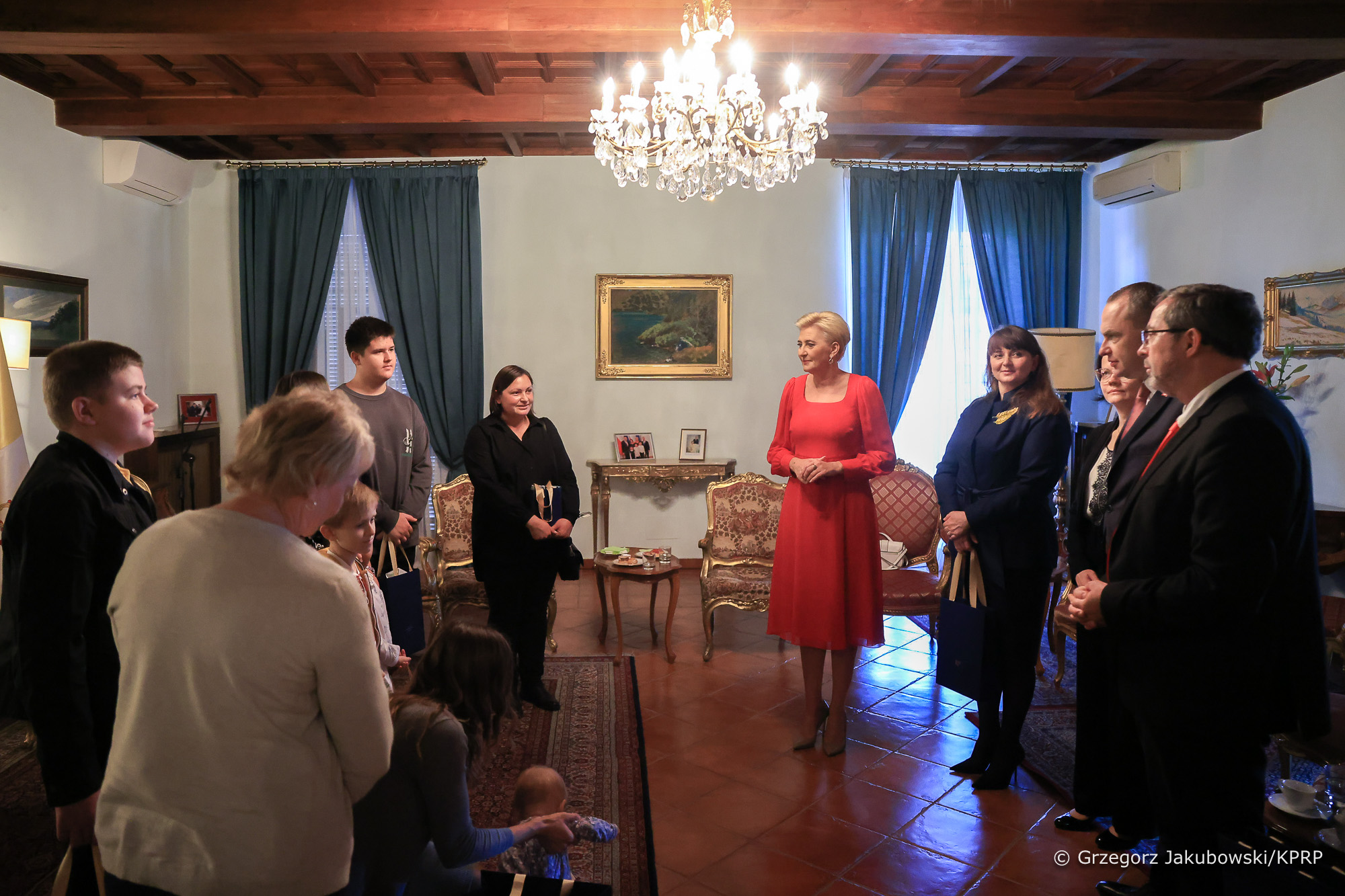 Nell'aprile di quest'anno cinque bambini malati di tumore, che sono dovuti fuggire dall'Ucraina in Polonia a causa dell'invasione russa, sono arrivati a Roma a bordo dell’aereo presidenziale polacco insieme ai loro famigliari e tutori per continuare le cure interrotte in Ucraina all'Ospedale Pediatrico Bambino Gesù. In occasione della visita ad aprile, Agata Kornhauser-Duda si era recata in ospedale per visitare il reparto dove venivano curati i piccoli pazienti ucraini. Due di loro, che stanno continuando le cure al Bambino Gesù, sono venuti insieme ai loro famigliari in Ambasciata di Polonia presso la Santa Sede per incontrare la Consorte del Presidente della Repubblica.
