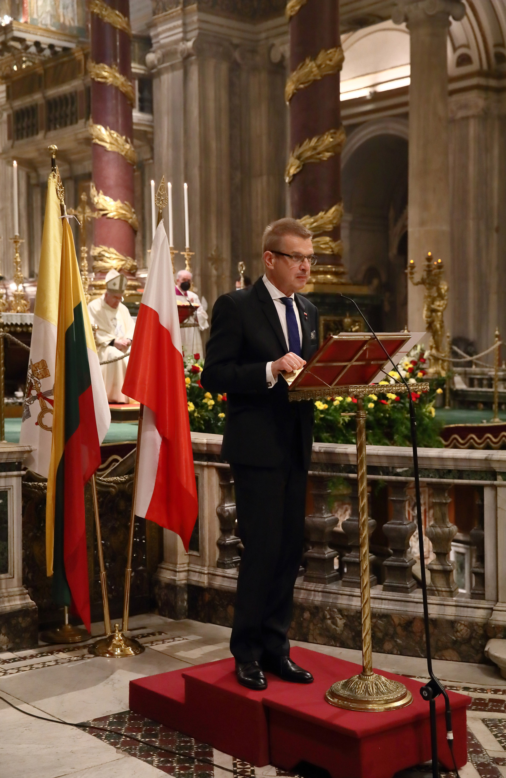 Dopo la S. Messa, sono intervenuti gli ambasciatori della Polonia, Janusz Kotański e della Lituania, Petras Zapolskas, sottolineando nei loro discorsi l’importanza dell’eredità della Repubblica delle Due Nazioni (ricordando il suo motto „liberi con i liberi, uguali con gli uguali”) e la stretta collaborazione tra i due paesi oggigiorno.