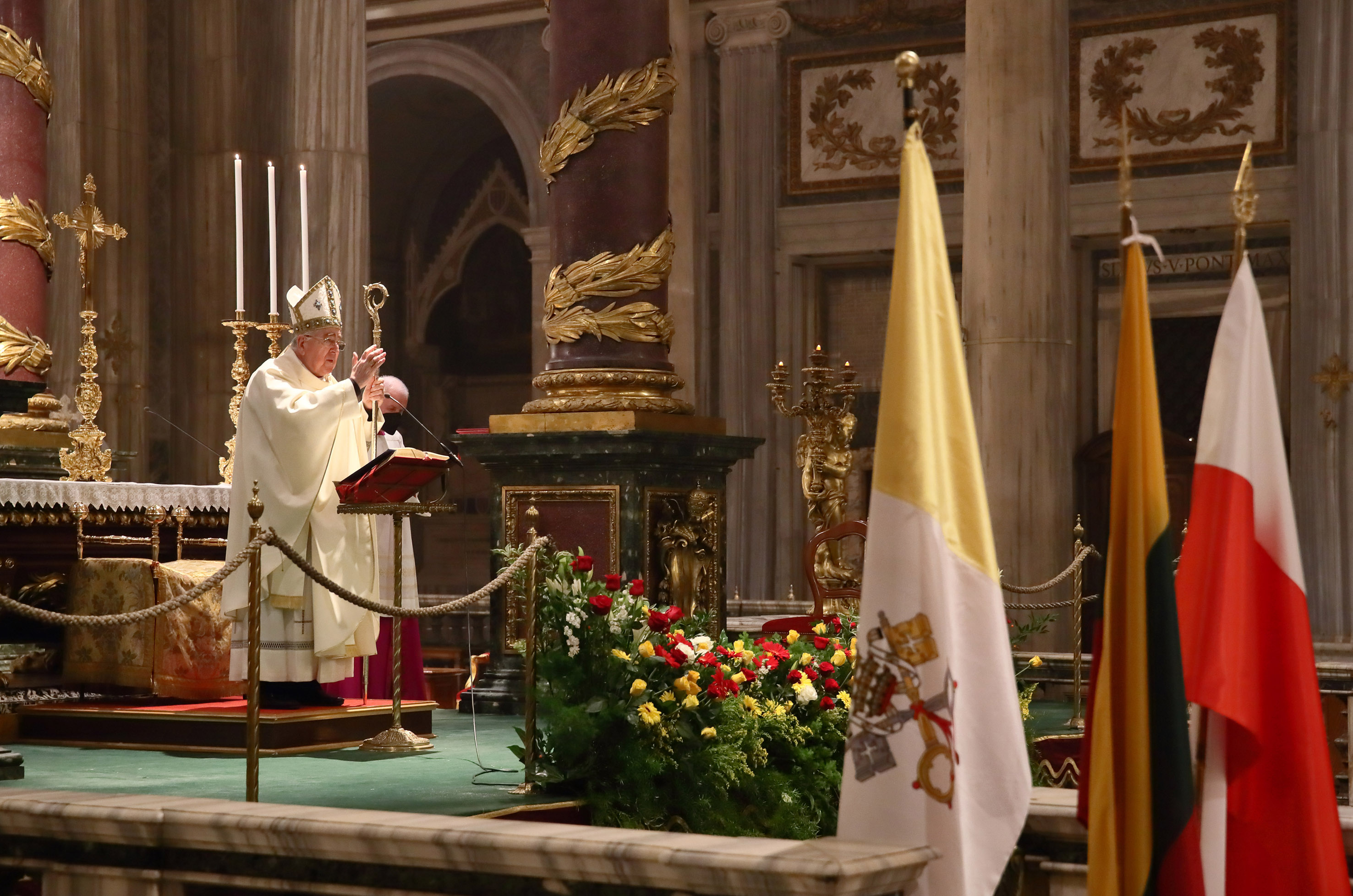 L’Eucaristia è stata presieduta dal Cardinale Stanisław Ryłko, Arciprete della Basilica, e concelebrata da numerosi vescovi polacchi (tra i quali gli arcivescovi di Cracovia e Katowice, Marek Jędraszewski e Wiktor Skworc e primate emerito di Polonia Józef Kowalczyk) e vescovi lituani (l’arcivescovo di Vilnius Gintaras Grušas, i vescovi della diocesi di Kaišiadorys e Vilkaviškis, Jonas Ivanauskas e Rimantas Norvila).