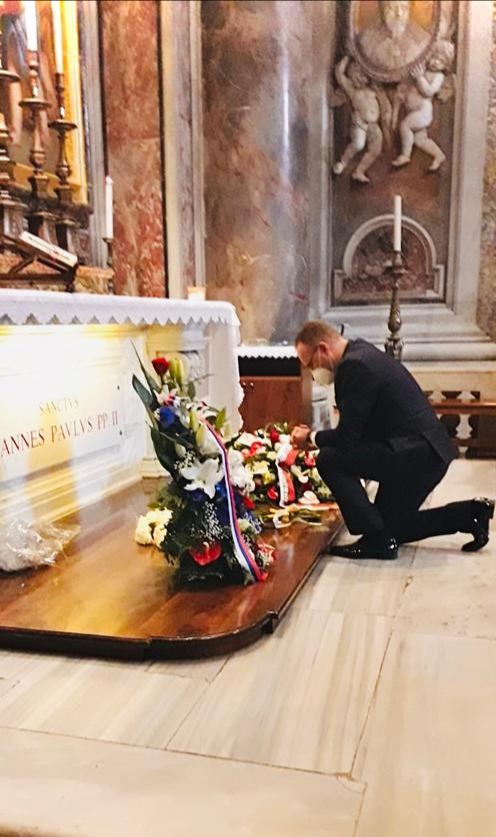 L'ambasciatore della Repubblica Slovacca presso la Santa Sede e il Sovrano Militare Ordine di Malta, Marek Lisánsky, in occasione del centenario della nascita di Papa San Giovanni Paolo II ha onorato il 18 maggio il ricordo di questa straordinaria personalità della storia del mondo e di quella slovacca posando fiori sulla sua tomba nella Basilica di San Pietro in Vaticano.
