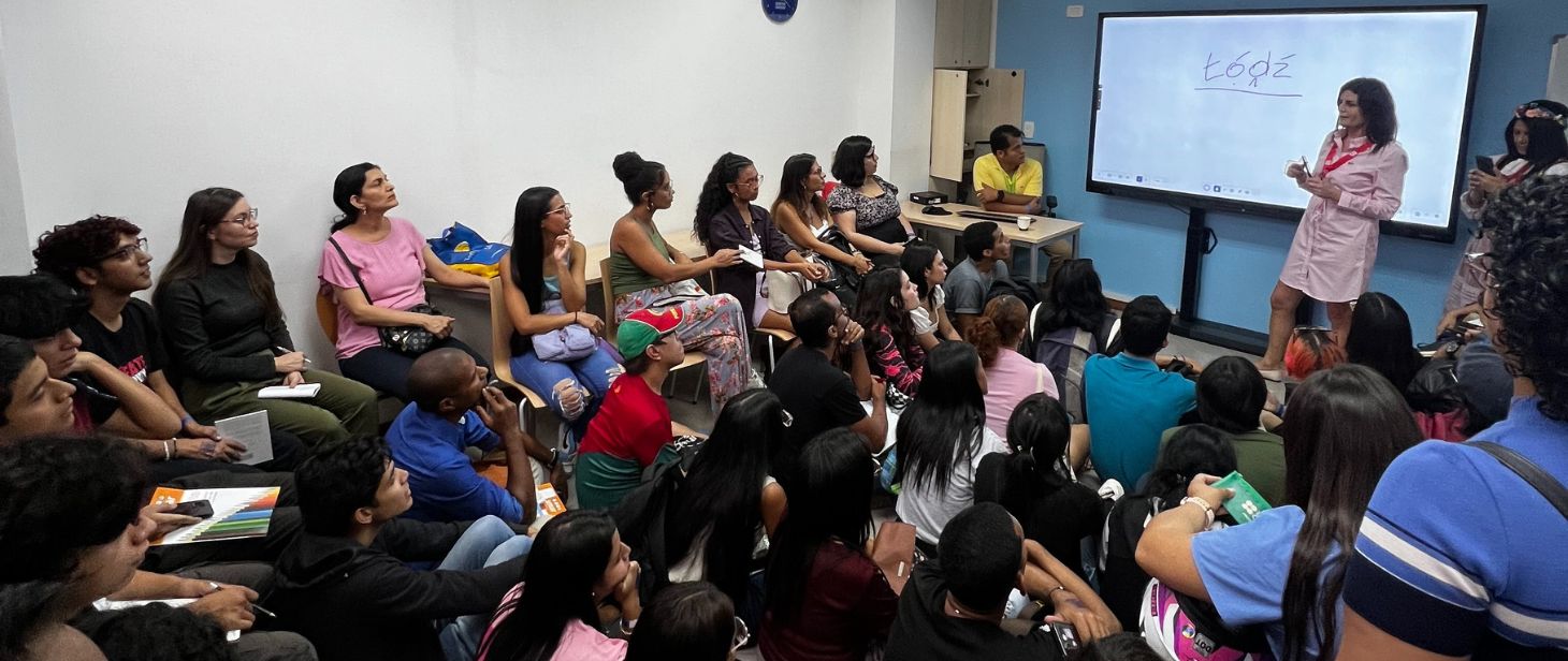 The event took place throughout the day at the Goethe-Institut Caracas and was aimed at audiences of all ages. The program included free language classes, children’s storytelling sessions, panel discussions, poetry recitals, dramatized readings, dance presentations, performances, a collective mural featuring words in multiple languages, a “language aperitif,” and an open karaoke where participants could sing songs in different languages. In addition, a class dedicated to sign language was offered, promoted by the Delegation of the European Union in Venezuela. This edition also welcomed special guests such as the Yunus Emre Institute, which offered an introductory Turkish class, and the Embassy of Japan in Venezuela, which presented a traditional Japanese game.