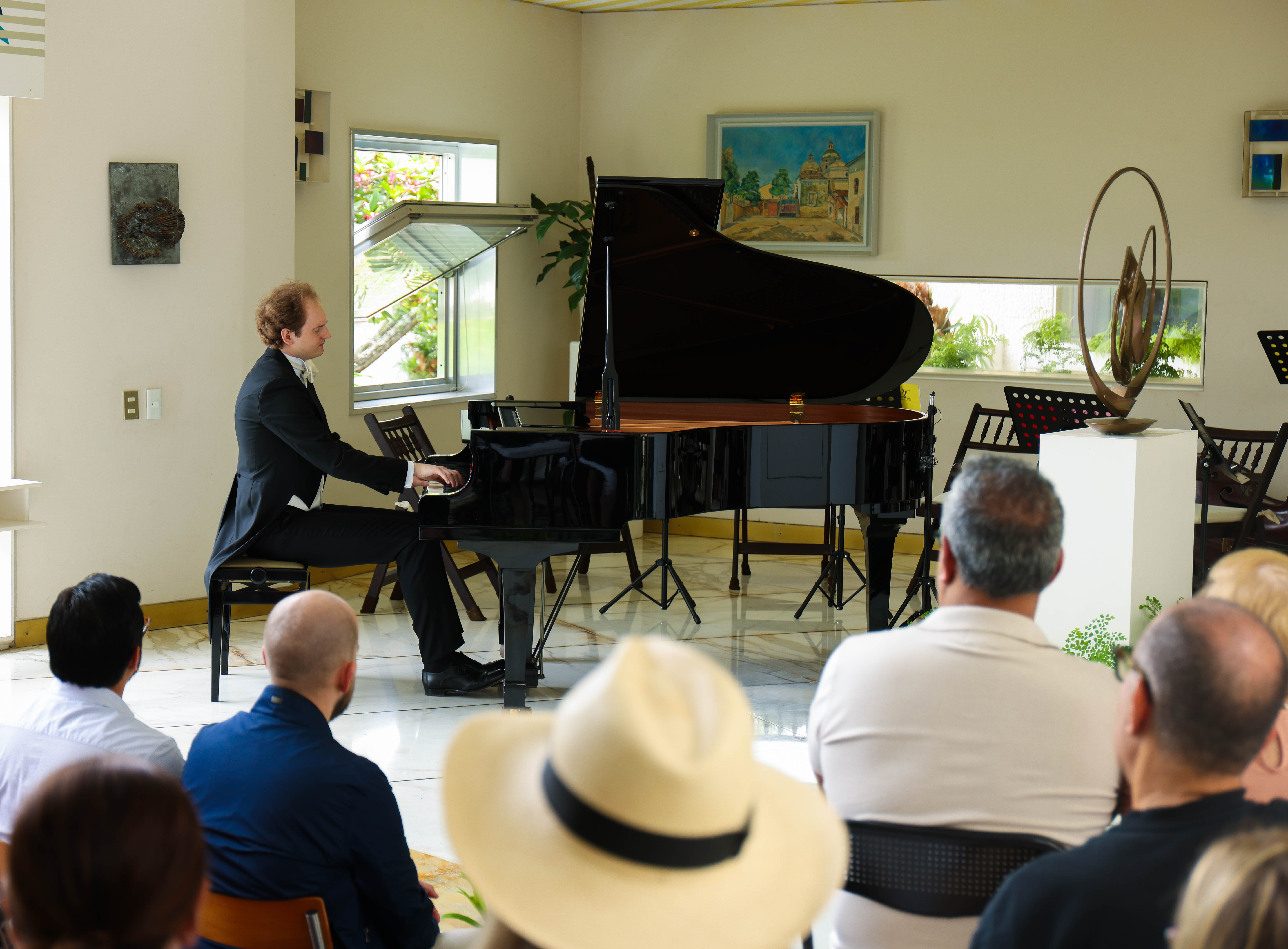 The second recital, held on June 1 at the prestigious Villa Planchart, had a more intimate character. The program included works by Juliusz Zarębski, Ignacy Jan Paderewski, and Chopin once again. An additional surprise was the Venezuelan part of the repertoire: an interpretation of Teresa Carreño’s Waltz Gayo and a moving version of the Fugue from Aldemaro Romero’s pajarillo, arranged for string quartet accompanied by the orchestra ensemble.