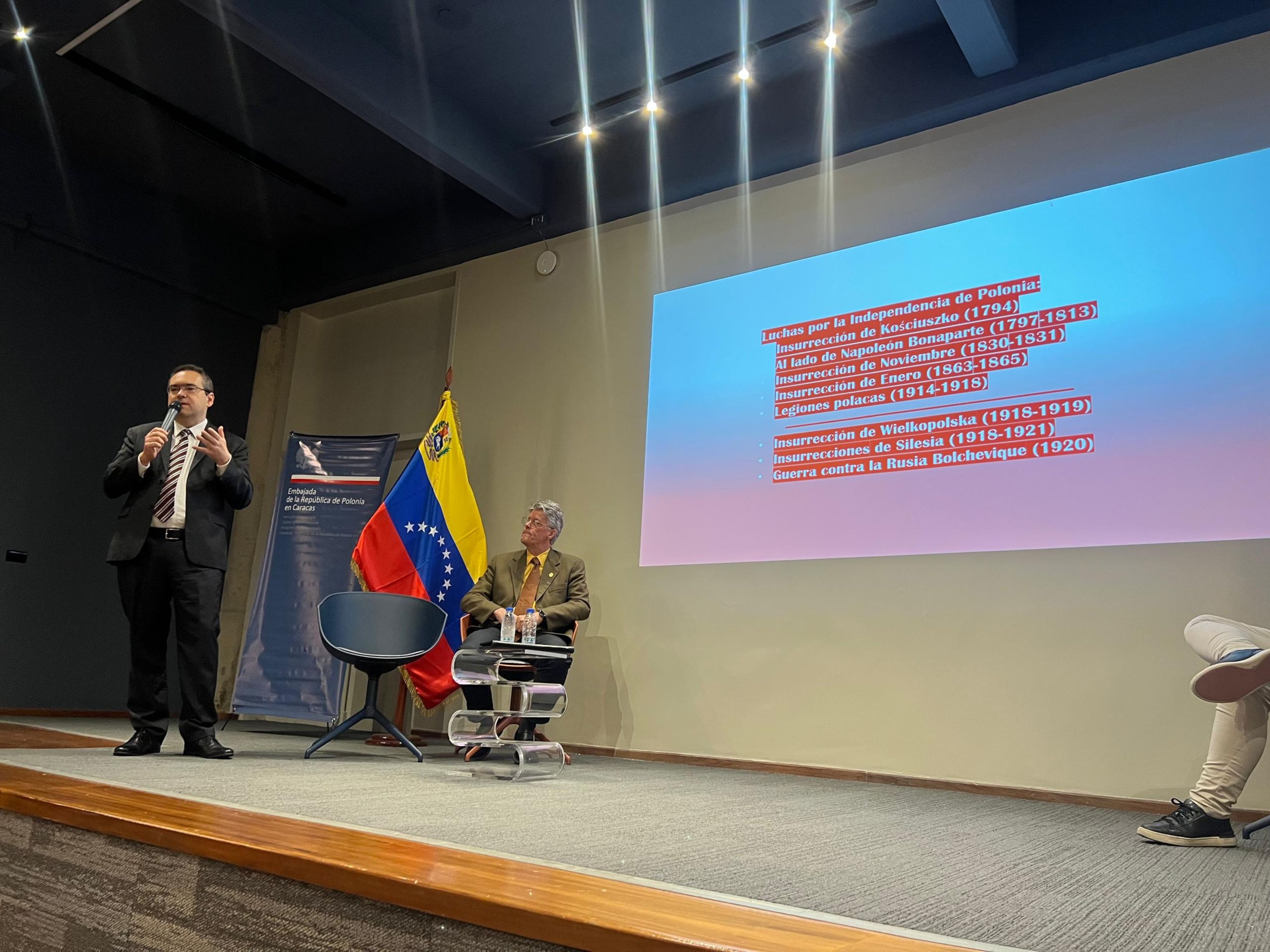 El 3 de marzo, el Encargado de Negocios a.i. de la Embajada de la República de Polonia en Venezuela, Sr. Daniel Gromann, ofreció la conferencia titulada “Polonia: una historia turbulenta, la transición democrática y el papel del país en el contexto internacional actual”, organizada junto con el Centro de Estudiantes de Estudios Internacionales de la Universidad Metropolitana (UNIMET). La actividad tuvo lugar en el auditorio Pensieri del campus universitario y fue moderada por el profesor de Estudios Internacionales y descendiente polaco, Henryk Domiter. La conferencia tuvo una duración aproximada de dos horas.