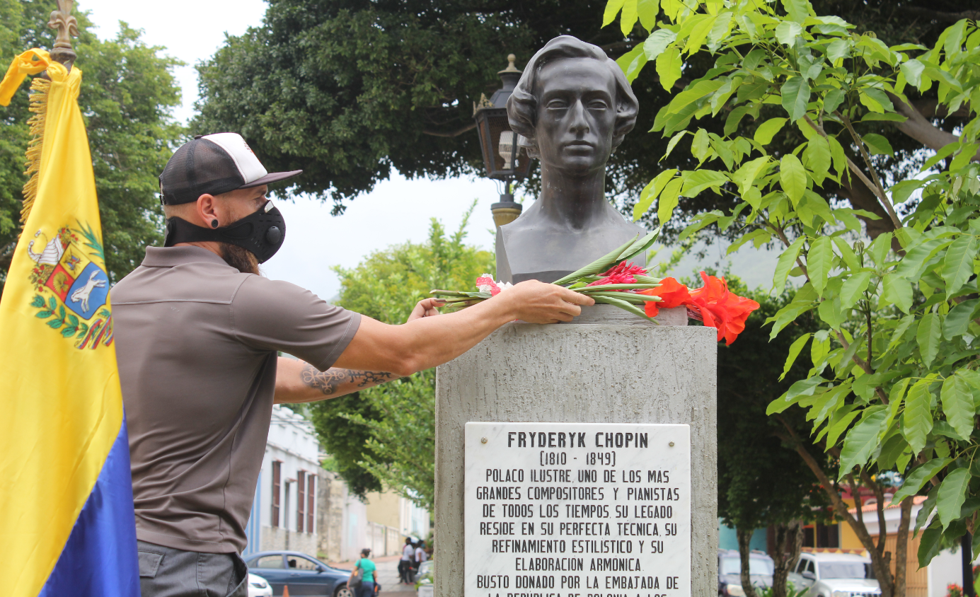 En el marco de la Semana de Polonia en el estado Nueva Esparta, la delegación de la Embajada de la República de Polonia en Caracas, el alcalde del Municipio Arismendi, Sr. Ali Romero Farias y la comunidad polaca, realizaron ofrenda floral al busto de Fryderyk Chopin, ubicado en el Boulevard 4 de Julio de la capital neoespartana, La Asunción.