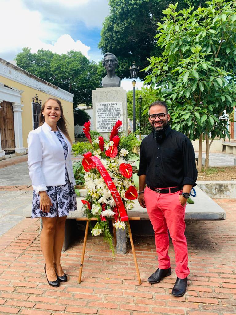Junto con el gobernador del estado Nueva Esparta, Sr. Alfredo Díaz y el alcalde de Arismendi, Sr. Alí Romero rindieron homenaje al Federico Chopin depositando flores en el busto del músico en una plaza en Asunción.