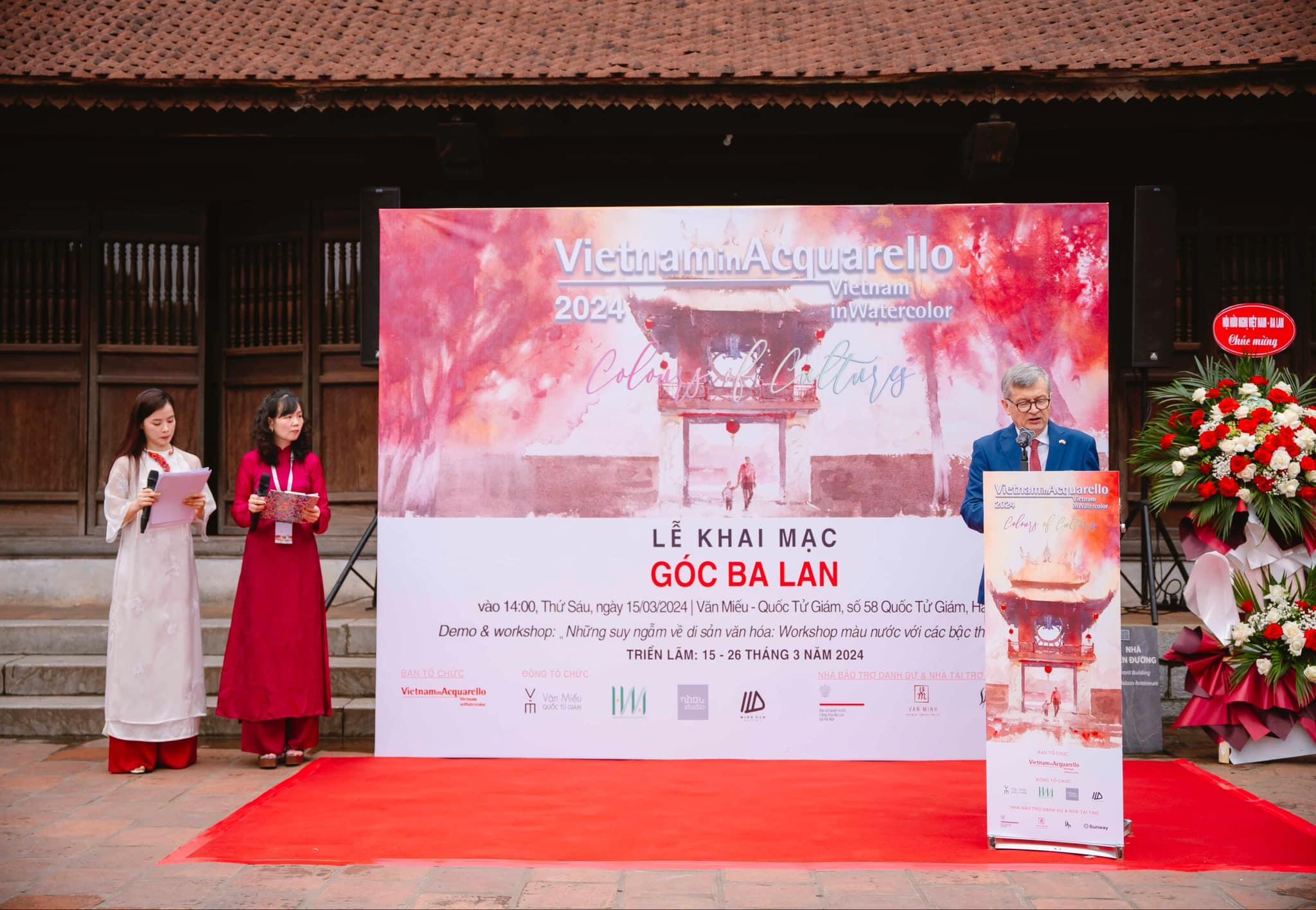 Lễ khai mạc triển lãm “VietnamInAcquarello 2024 - Sắc màu văn hóa” và “Góc Ba Lan” vào ngày 15 và 16 tháng 3 được tổ chức trước sự chứng kiến của hơn 500 đại biểu, trong đó có các đại diện từ Bộ Ngoại giao Việt Nam, các sở, ban ngành Thành phố Hà Nội, đại diện của các đoàn ngoại giao, Hội Hữu nghị Việt Nam - Ba Lan, các cơ quan báo chí quan trọng và uy tín tại Việt Nam cũng như đông đảo các quan khách, sinh viên mỹ thuật và hội họa và những người yêu nghệ thuật khác.