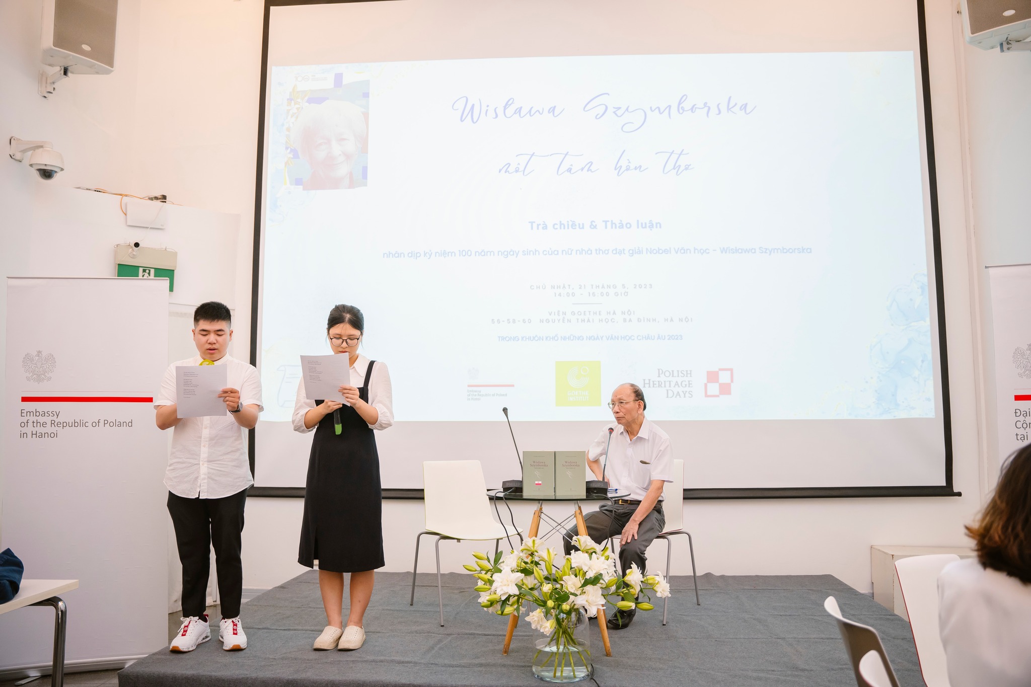 Vào ngày 21 tháng 5 năm 2023, trong khuôn khổ sự kiện thường niên Những ngày Văn học Châu Âu 2023 tại Việt Nam và năm 2023 được Thượng viện nước Cộng hòa Ba Lan lấy là Năm Wisława Szymborska, chúng tôi đã gặp gỡ những người Việt Nam đam mê văn học để cùng nhau đọc và đàm đạo về các tác phẩm của nhà thơ Ba Lan đoạt giải Nobel.