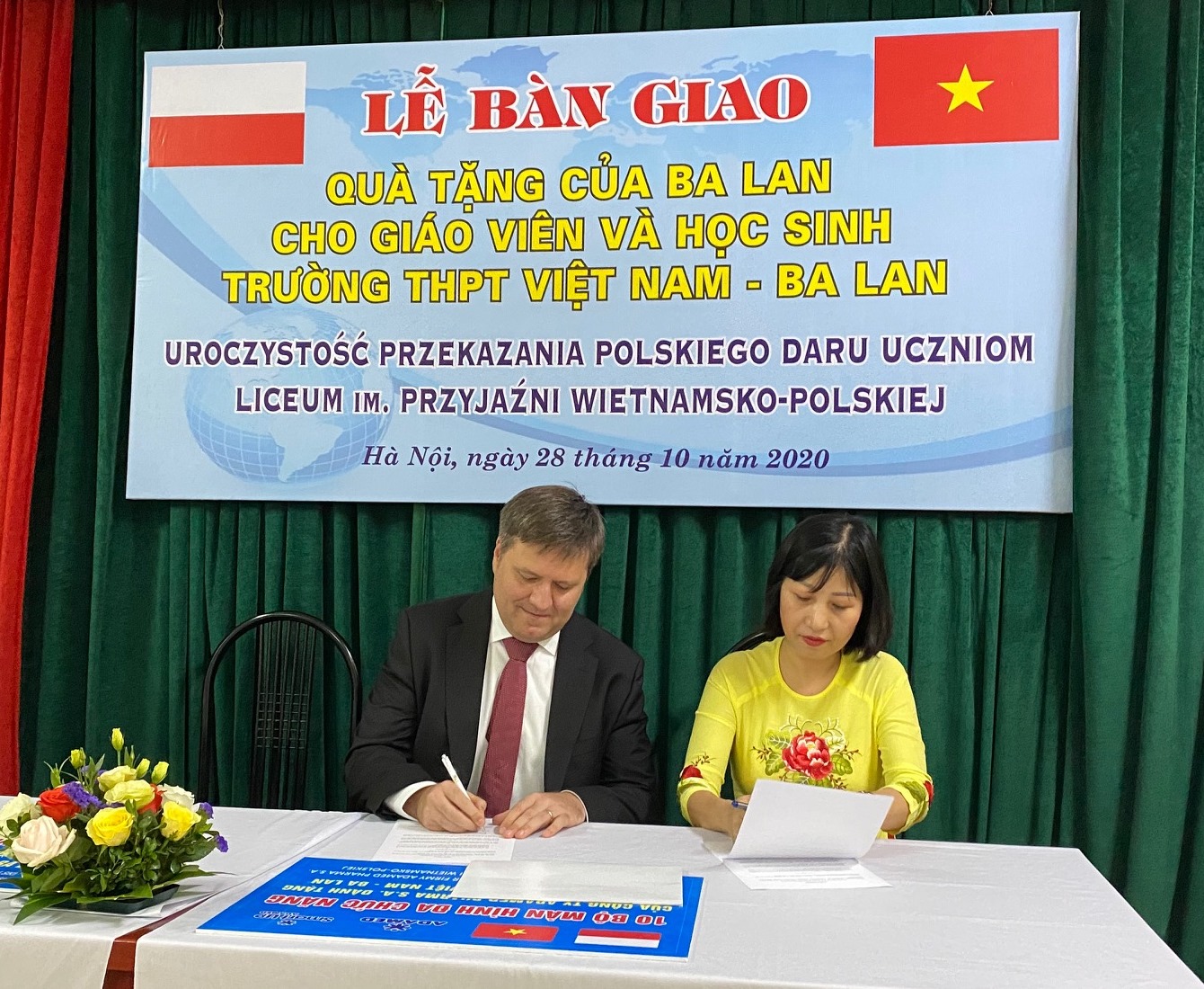Vào ngày 28 tháng 10 năm 2020, tại trường Trung học Phổ thông Việt Nam – Ba Lan tại Hà Nội đã diễn ra Lễ Bàn giao Quà tặng của Đại sứ quán Ba Lan tại Hà Nội (10 bộ máy tính cho thư viện) và một doanh nghiệp Ba Lan (10 màn hình đa chức năng) cho nhà trường. Tham dự buổi lễ có Đại sứ Cộng hòa Ba Lan tại Hà Nội, Ngài Wojciech Gerwel và các cán bộ Đại sứ quán, Bà Ngô Thị Mai Hương – Hiệu trưởng nhà trường cùng Ban giám hiệu và đại diện Hội cha mẹ học sinh, đại diện nhà tài trợ Ba Lan, cùng đại diện Sở Giáo dục thành phố Hà Nội, quận Hoàng Mai và Hội Hữu nghị Việt Nam – Ba Lan. Đây là năm tiếp theo Đại sứ quán cùng doanh nghiệp Ba Lan này thực hiện dự án hỗ trợ trang thiết bị cho nhà trường. Năm ngoái 20 màn hình đa chức năng đã được trang bị cho 20 phòng học.