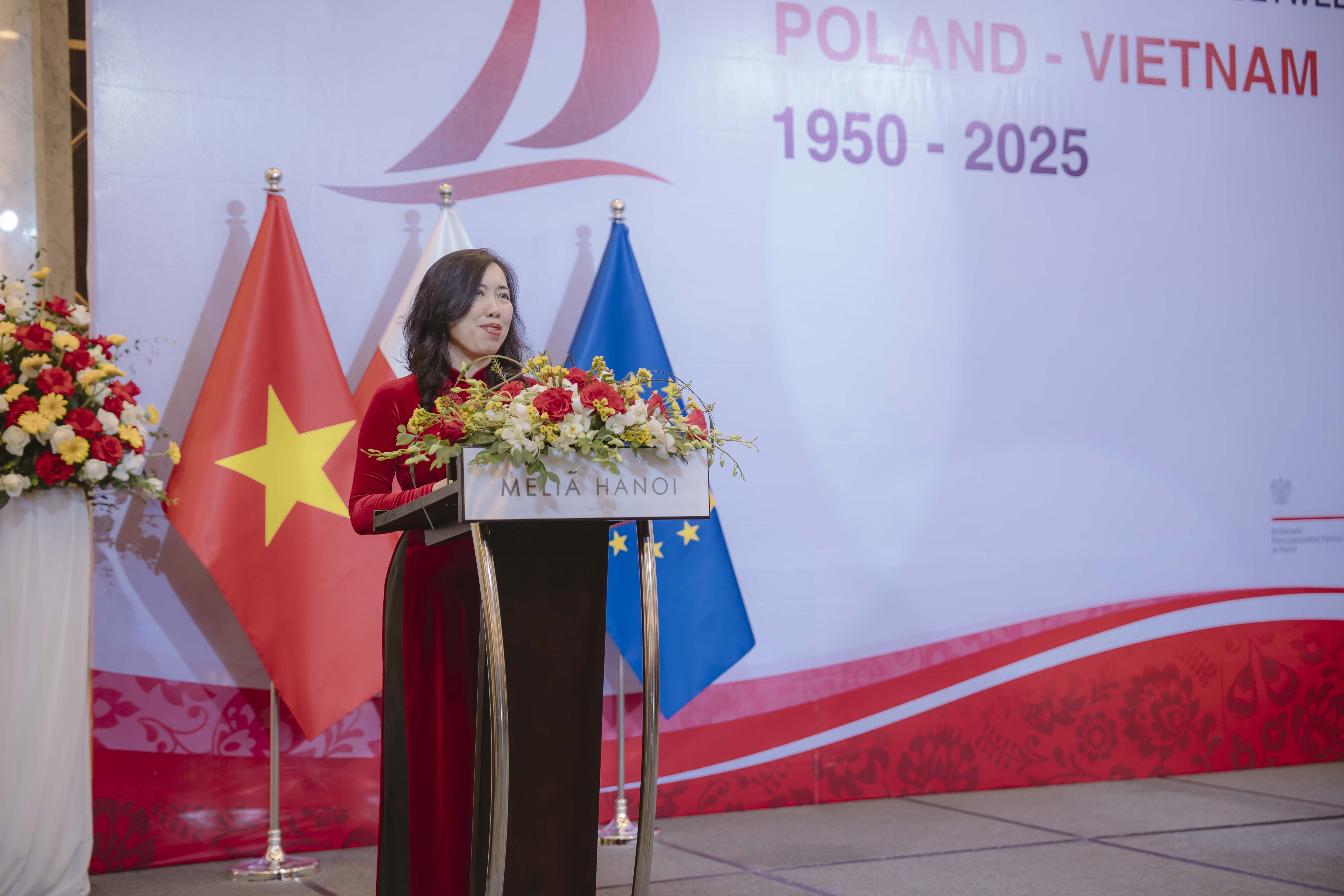 Trong bài phát biểu của mình, Bà Joanna Skoczek, người đứng đầu Đại sứ quán, đã nhắc lại về giai đoạn đầu của mối quan hệ Ba Lan-Việt Nam và những thách thức quan trọng nhất hiện nay: